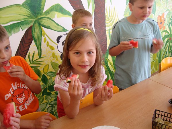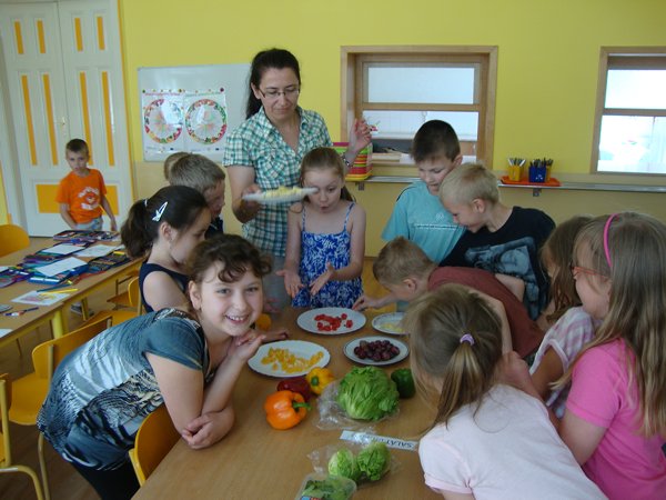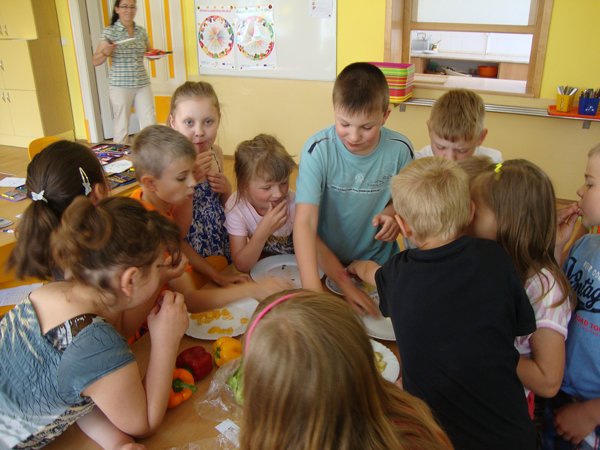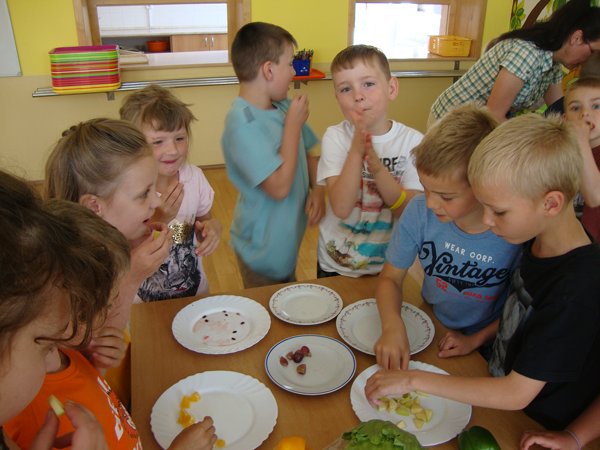 Některé z nich byly velmi exotické a jejich názvy jsme neuměli ani pořádně vyslovit. Třeba takový kumquat – plod připomínající malinký pomeranč byl pro nás novinkou. Poznávali jsme některé druhy po hmatu, jiné se zavřenýma očima jen podle chuti. Na závěr nás čekala ochutnávka všech druhů ovoce a zeleniny, které byly v koších.
