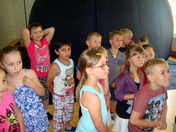 Ve čtvrtek 11. června 2015 se v naší malé škole objevila veliká nafukovací kopule, která zaplnila celou tělocvičnu. Bylo to mobilní planetárium. V nafukovací kopuli o rozměrech 5 x 6 x 3 metry jsme se hravou a zábavnou formou dozvěděli informace z oblasti astronomie a přírodních věd.