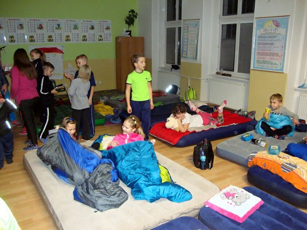 Ve čtvrtek 3. prosince 2015 se konala tradiční akce naší školy „Spaní ve škole“. Ubytování bylo v 18 hodin a potom už děti netrpělivě vyčkávaly, kdy nastane Mikulášská procházka noční školou. Na jednotlivých stanovištích čekaly na děti jednoduché úkoly.