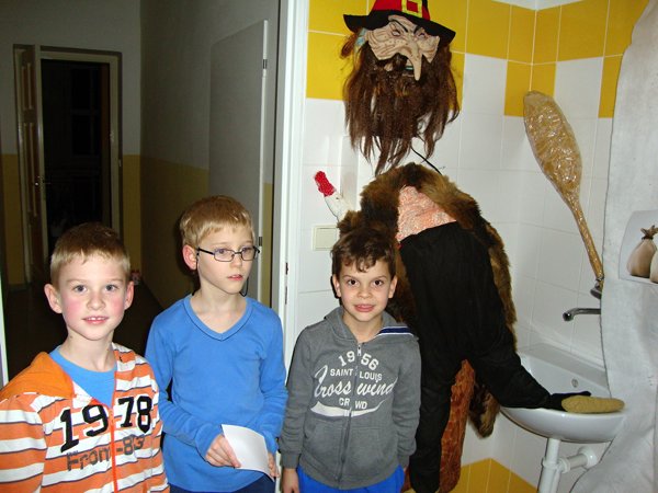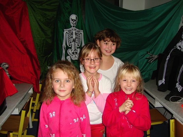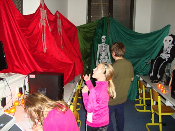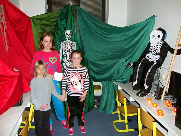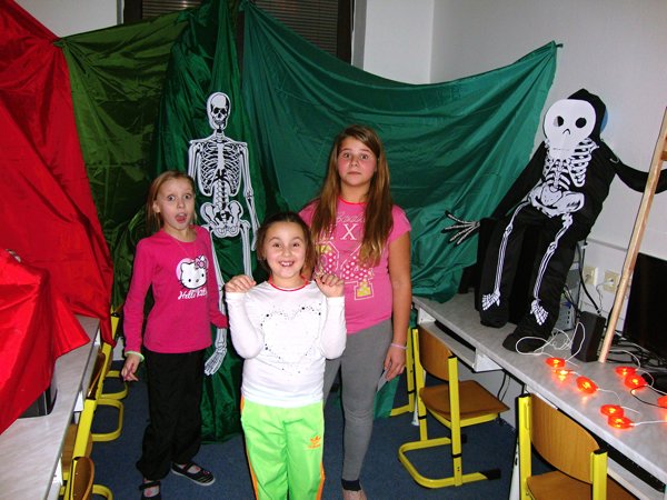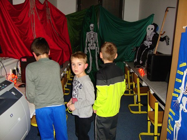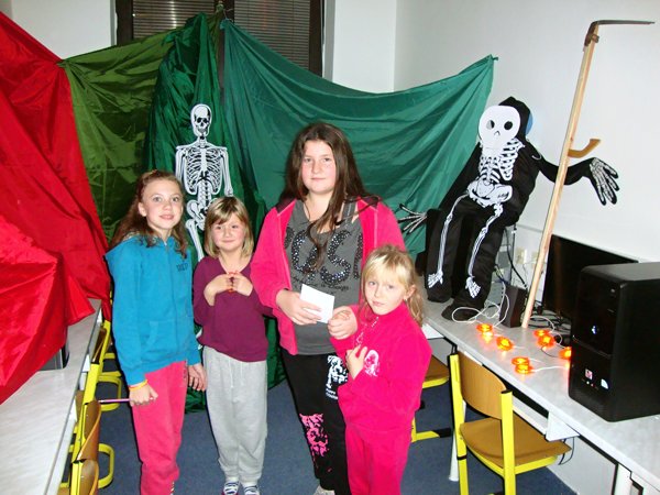 U kostíků počítaly, kolik je v místnosti kostlivců, u starého loupežníka zase pytle s ukradenými zlaťáky, u čertíka skládaly puzzle, u anděla počítaly andílky. Ve sklepě měly za úkol spočítat všechny čerty, naštěstí nebyl ani jeden živý. S nástrahami nadpřirozených bytostí si nakonec poradili všichni a zvládli to i ti, kteří měli zpočátku obavy. Poté následovala lehká večeře, čištění zubů a zalehnutí do spacáků. Prvňáčci po pohádce hned usnuli, ale starší žáci ponocovali mnohem déle. Noční promítání se protáhlo, ale nakonec všichni plni zážitků spokojeně usnuli.