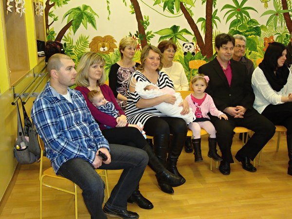 Po jejich vystoupení přivítal všechny nové občánky také starosta obce pan J. Vrána. Po zápisu rodičů do pamětní knihy a předání malých dárků se naši noví občánci mohli v obecní kolébce vyfotit. Přání všeho nejlepšího do života dostali od nás Anetka, Anrew Julian, Barborka, Jeremiáš, Patrik a Mia.