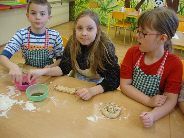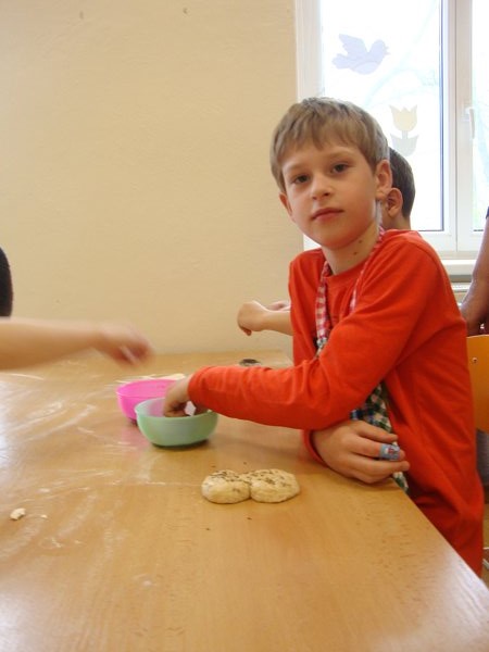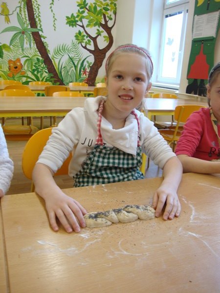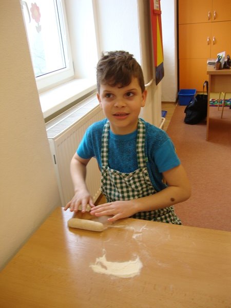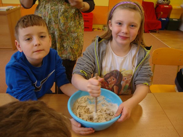 Ve středu 13. dubna 2016 se uskutečnil na naší škole pro žáky 1. – 3. ročníku výukový program Ekocentra Iris Prostějov. Na začátku si děti poslechly pohádku O kuchaři, který urazil pole. Potom si povyprávěly, co všechno se musí udělat, než se chléb dostane až na stůl. Připomněly si, jaké druhy obilí znají, zkusily práci s mlýnkem, hnětly těsto, pekly placky a potom už jen ochutnávaly.