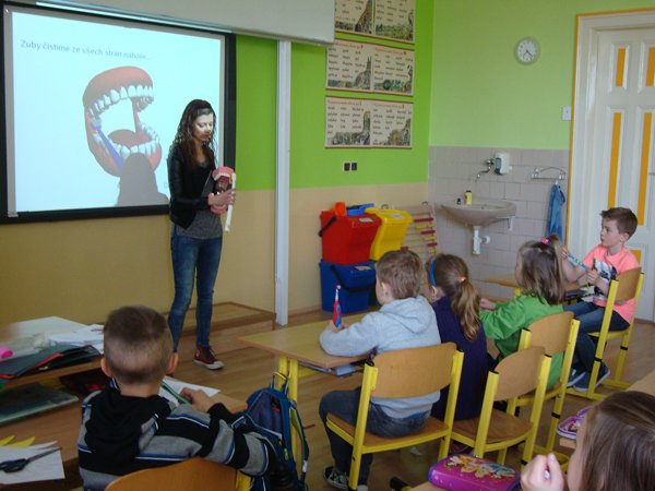 Ve středu 20. dubna 2016 se naši žáci zúčastnili preventivního programu Dental preventivention – péče o zuby. S programem přijely studentky lékařské fakulty UP Olomouc. V první části se děti dozvěděly základní informace o dutině ústní, o zubech, o procesech, které v dutině ústní probíhají, o důvodech proč je třeba čistit zoubky a jak si správně vybrat kartáček.