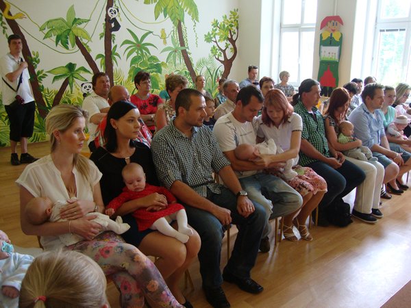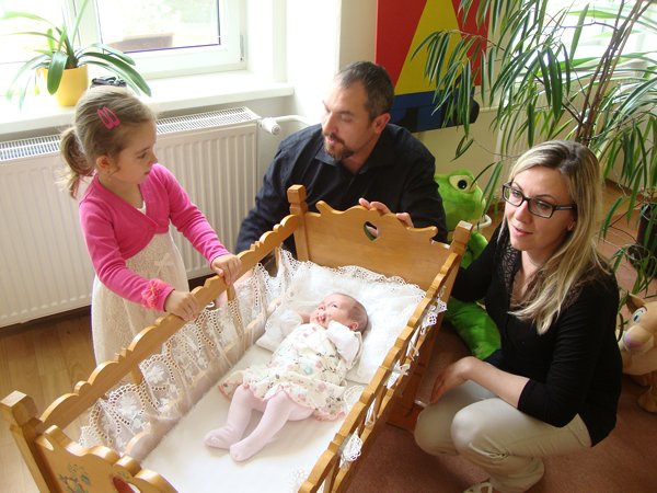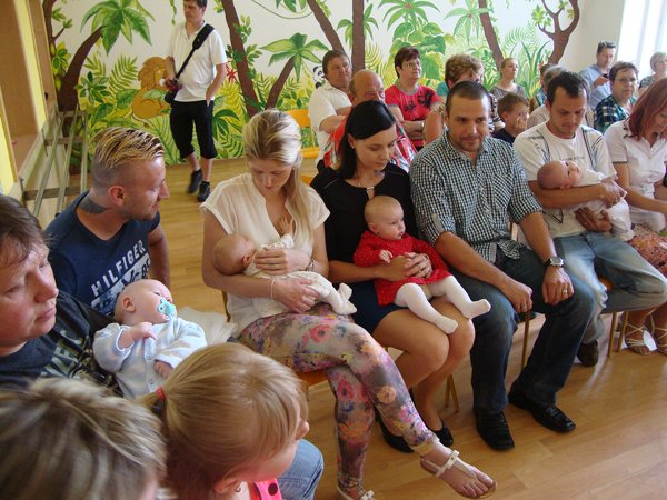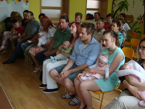 Po jejich vystoupení přivítal všechny nové občánky a jejich rodiče také starosta obce pan J. Vrána. Přivítáni byli Nela, Pavlína, Marek, Albert, Pavel, Adriana a Adéla. Po zápisu rodičů do pamětní knihy následovalo předání malých dárků a slavnostní přípitek. Na závěr si naši noví občánci mohli vyzkoušet pohodlí obecní kolébky.