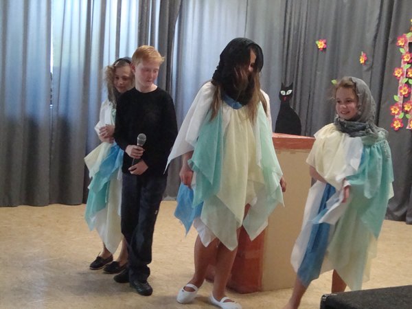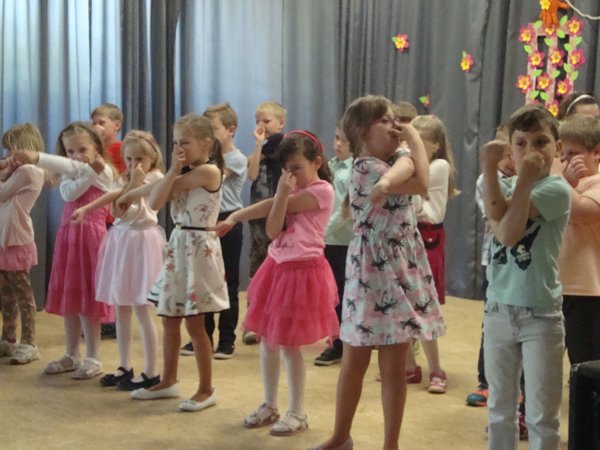 Během dvouhodinového vystoupení se děti představily s mnoha básněmi, písněmi, předvedly i několik krátkých divadelních scének, např. Paleček a jeho kamarádi, O Koblížkovi, Jak pes začal kamarádit s člověkem, O Smolíčkovi, O líném Honzovi, Mach a Šebestová mezi piráty a zatančily několik tanců, např. Růžová, Tarzan, Popeláři, Sloník a Pomáda. Doufáme, že se vystoupení našich žáků maminkám, babičkám a tetám líbilo.