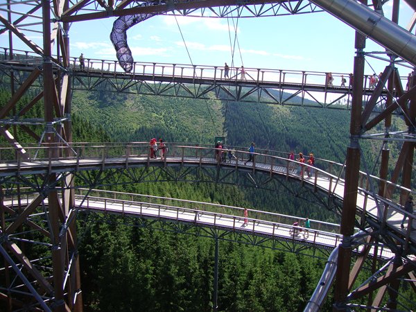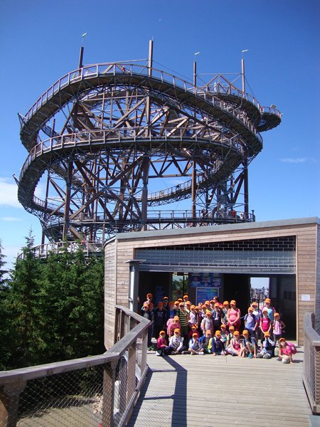 Ve středu 29. června 2016 jsme se vydali na cestu do oblak. Naším cílem byla Stezka v oblacích na Dolní Moravě v oblasti Králického Sněžníku. Její návštěvu jsme plánovali už na naší škole v přírodě, ale pro nepřízeň počasí jsme ji museli odložit. Čekání se nám vyplatilo. Den byl nádherný a výlet jsme si hezky užili.