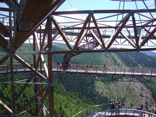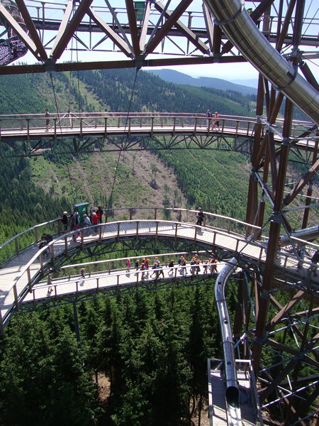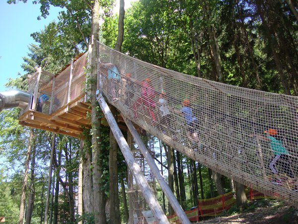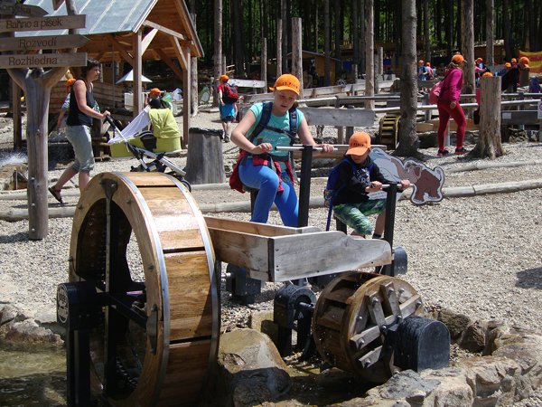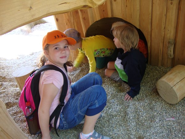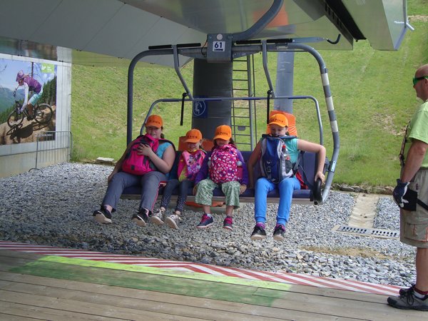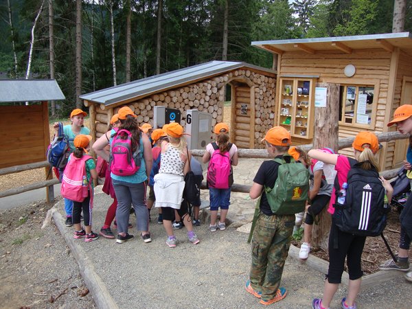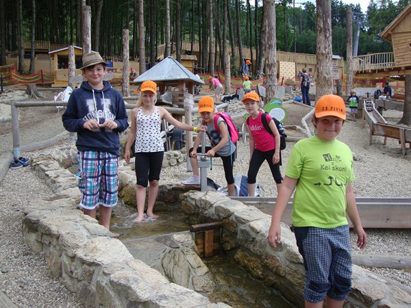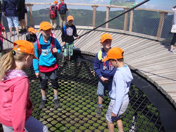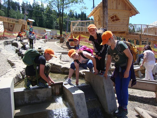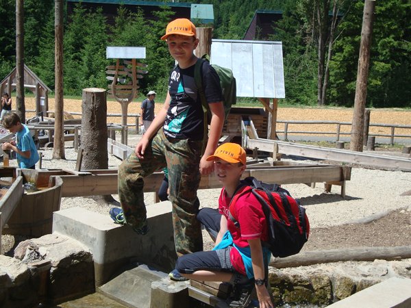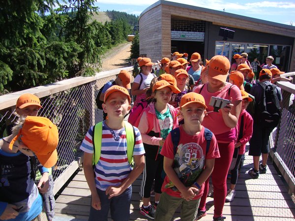 Děti byly odvážné, zvládly cestu lanovkou na Sněžník do výšky 1116 m i vyjít na vrchol samotné stezky, která je vysoká 55 m. K přesunutí mezi patry využili někteří odvážlivci tzv. rukáv, což je tunel z husté sítě a velkou odvahu vyžadoval i vstup na tzv. kapku, síť, která byla na samotném vrcholu. Potom už následoval méně náročný, ale o to více zábavný program – návštěva Mamutíkova vodního parku. Jedná se o vodní přírodní areál, kde voda je základním prvkem k hraní, experimentování a získávání zkušeností o přírodě a jejích zákonitostech. Všechny části parku jsou interaktivní a děti si mohou vše sami regulovat, vyzkoušet, uchopit či roztočit, a protože bylo teplo, mohly se ve vodě i osvěžit. Na areál navazuje Lesní zážitkový park s domečky, houpačkami, lanovými žebříky a tobogánem, kde se děti pořádně vyřádily. Tři hodiny uplynuly jako voda v potůčcích Mamutíkova parku a my jsme se museli vydat na dalekou cestu domů. Den byl náročný, ale výlet se povedl a všem se moc líbil.