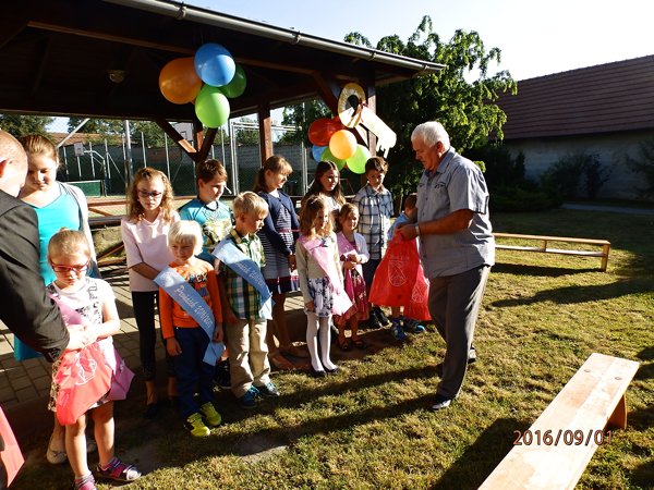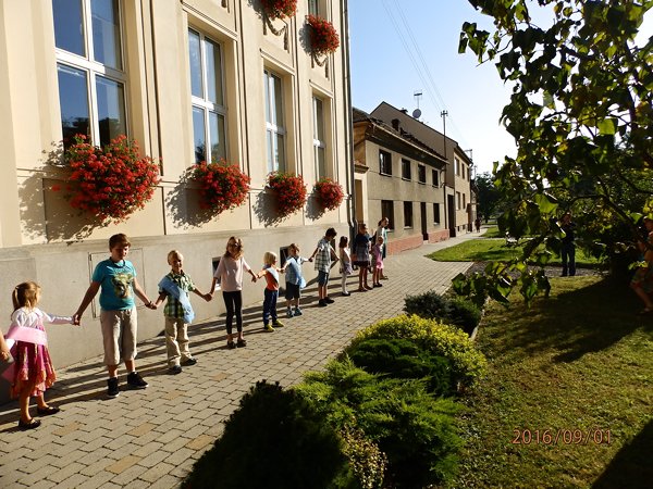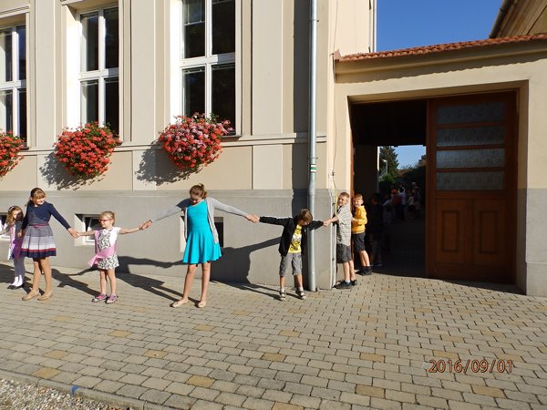 Dva měsíce prázdnin jsou za námi, a proto jsme se ve čtvrtek 1. září 2016 opět sešli v naší škole. Využili jsme krásného počasí a setkání jsme uskutečnili netradičně na našem školním dvoře. Přivítali jsme i 7 nových žáčků 1. třídy, kteří se v doprovodu svých rodičů zúčastnili zahájení nového školního roku 2016/2017.