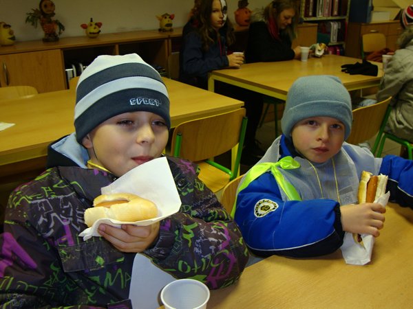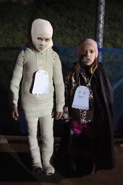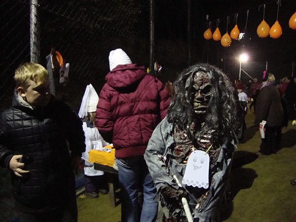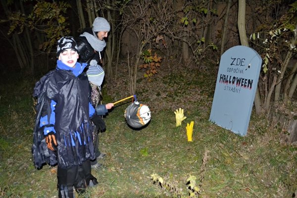 Po jejich splnění si děti zašly na párek a čaj, dospělí měli připravený punč. Maminky připravily sladkosti s halloweenským duchem. Kolem půl sedmé se všechna strašidla vydala na stezku odvahy. Na nejstrašidelnějším úseku kolem hřbitova na ně čekali duchové, kostlivci a z rakve vylézal zombie. Všichni to však zvládli a na konci je čekala sladká odměna. Bylo chladno, ale jinak se počasí celkem vydařilo a tak všichni odcházeli domů spokojení. Děkujeme paní učitelkám za přípravu soutěží, dětem za přípravu výzdoby, našim bývalým žákům za pomoc se soutěžemi a děkujeme také všem rodičům, kteří se podíleli při přípravě a organizaci celé akce.