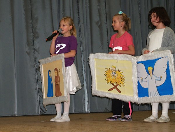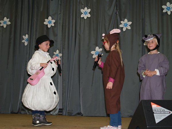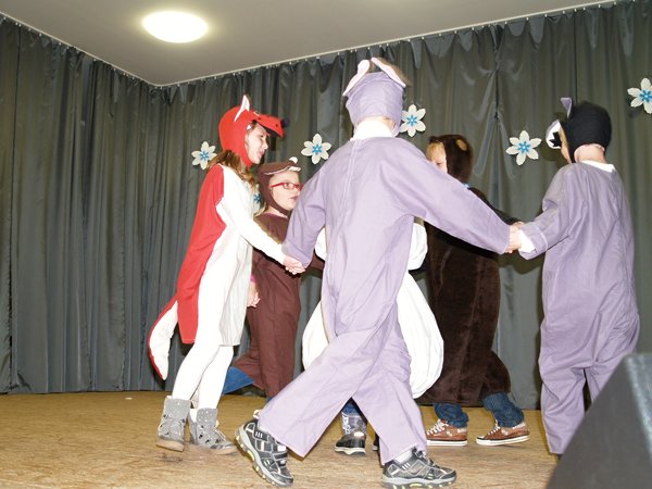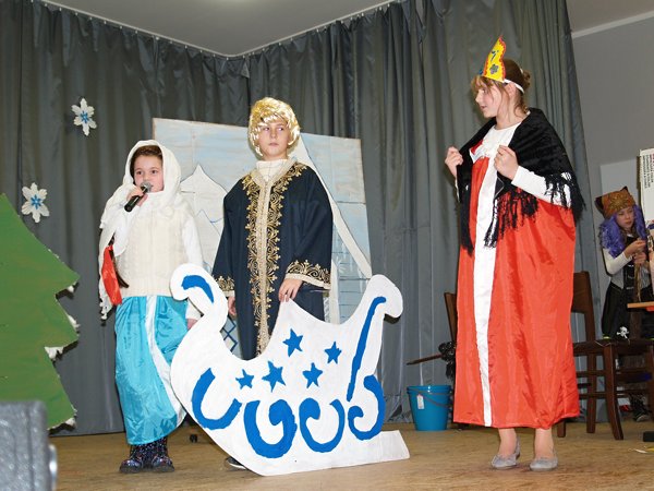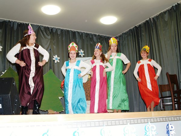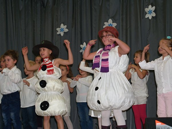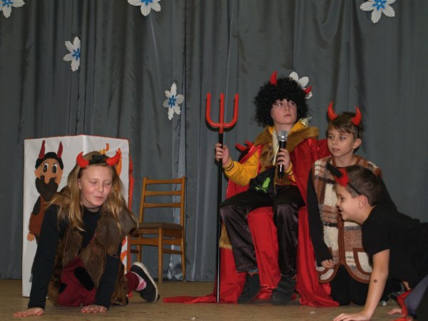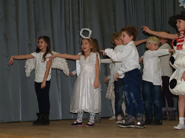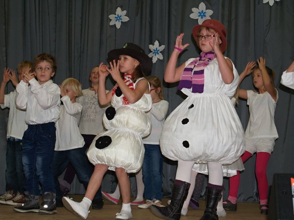 Potom už se v rychlém sledu střídalo slovo mluvené se zpěvem a tancem. Začátek patřil společnému zpěvu, potom prvňáčci a druháčci předvedli pásmo básniček o zimě a o Vánocích. Se sněhulákem, který měl místo nosu mrkvičku tančily mladší děti, páťáci zahráli pohádku Mrazík. Poté následovala mladší děvčata s pompony a písničkou Rolničky, po nich prvňáčci se sněhuláčkem, druháci nám pověděli o narození Ježíška a třeťáci a čtvrťáci nám zahráli pohádku Láska rohatá. Závěr patřil tanci a zpěvu. Náš velký dík patří všem účinkujícím, paní učitelkám a šikovným a ochotným maminkám, které si opět našly čas a připravily pro všechny vánoční cukroví. Nálada byla svátečně vánoční a diváci snad odcházeli domů spokojení.