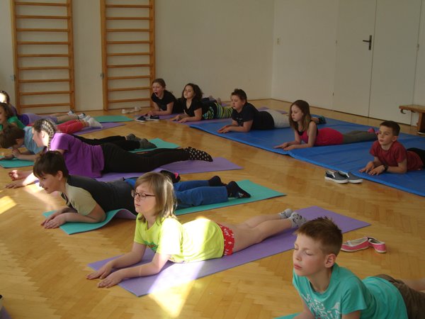 V úterý 18. dubna jsme si zacvičili s paní Pacejkovou jógu.
