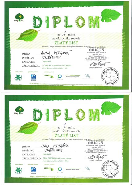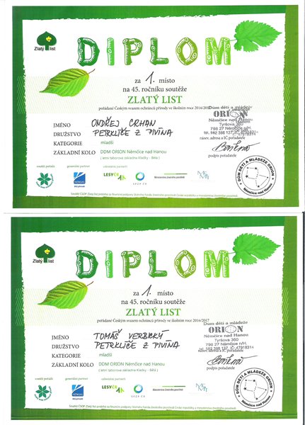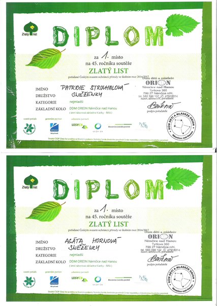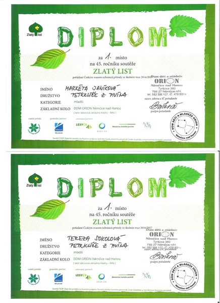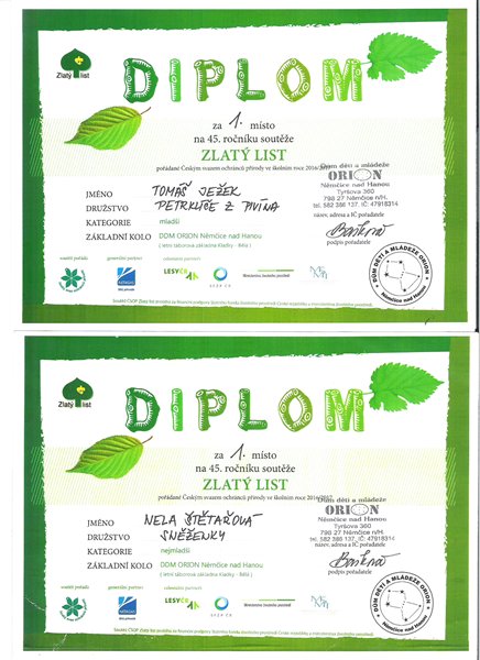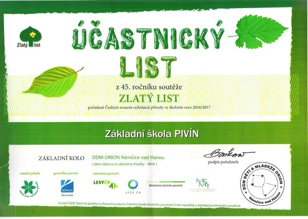 V úterý 25. dubna 2017 se tři šestičlenná družstva 3., 4. a 5. ročníku naší školy zúčastnila ve Dzbelu 45. ročníku přírodovědné soutěže Zlatý list, kterou pořádal DDM Orion Němčice nad Hanou.