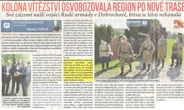V sobotu 6. května zavítala u příležitosti 72. výročí ukončení 2. světové války do naší obce Kolona vítězství. Kolonu tvořili nadšenci převlečení do uniforem příslušníků 81. gardové střelecké divize a 83. samostatné brigády námořní pěchoty, která náš kraj před 72 lety osvobozovala.