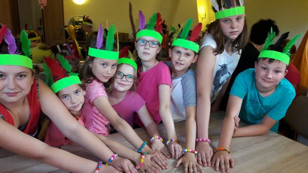 4 indiánské kmeny spolu soutěžily o jednotlivé dílky mapy, která je dovedla k ukrytému pokladu. Bohužel některé indiánské žaludky byly napadeny nepříjemným bacilem, přesto jsme ale prožili v krásném prostředí pěkné dny se spoustou zábavy a budeme na ně jistě všichni rádi vzpomínat.