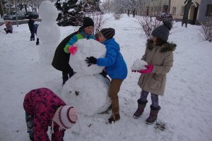 vícePaní Zima se k nám ještě vrátila, a proto jsme si mohli před naší školou zadovádět a postavit si sněhuláky.