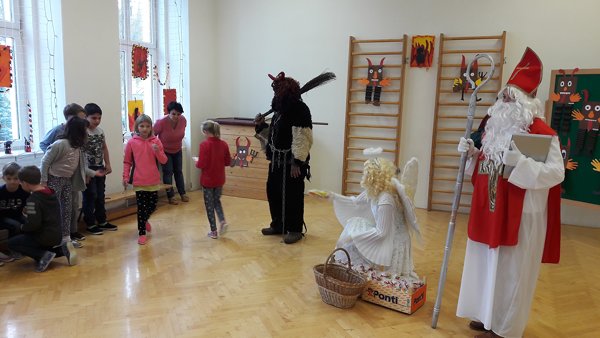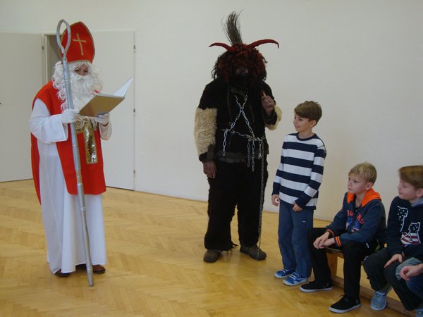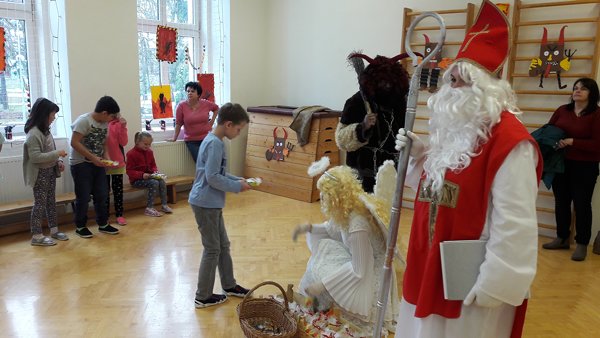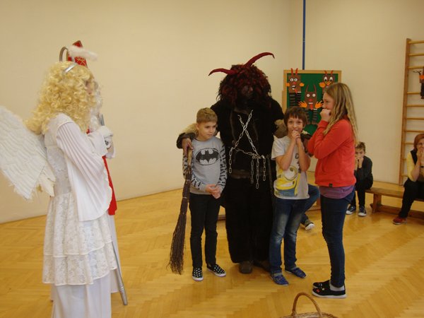 Anděl odměňoval hodné žáky sladkostmi, Lucifer trestal zlobivé čertovským znamením na tvář, někteří dostali i metlou na zadek. V čertovském pytli ale letos nikdo neskončil. Všichni slíbili, že se polepší…