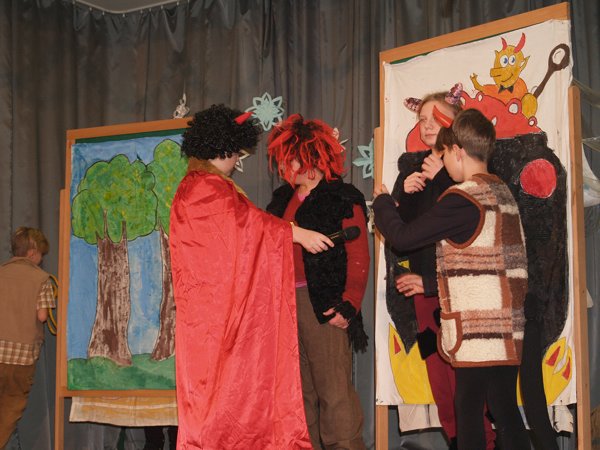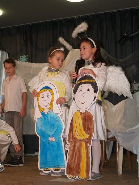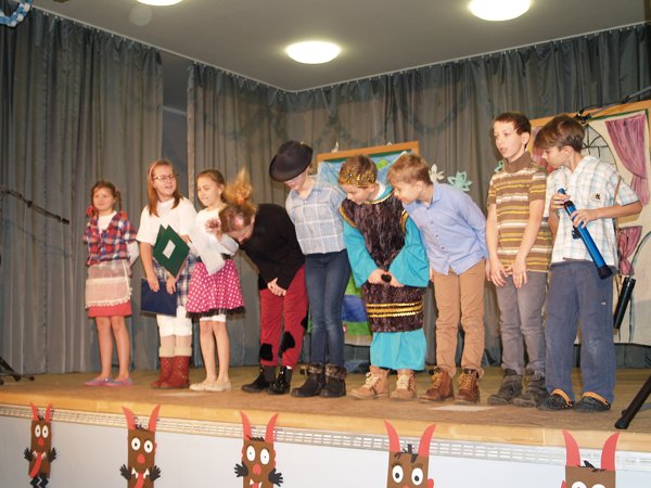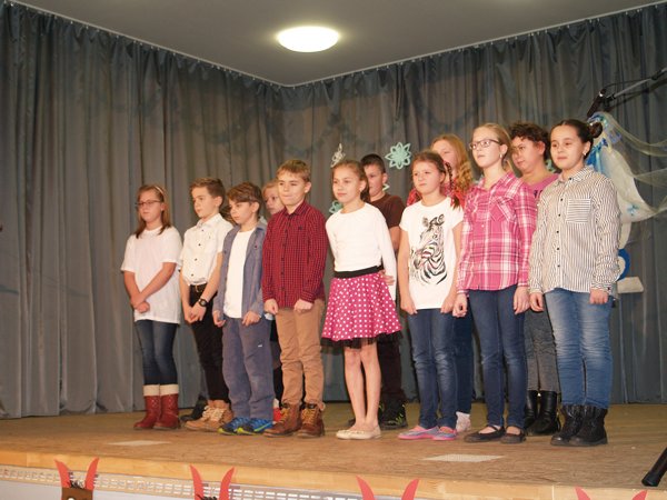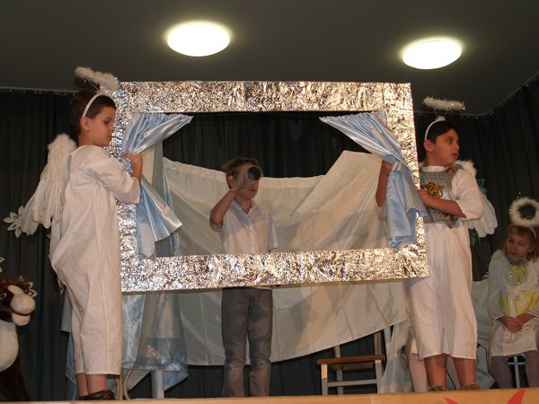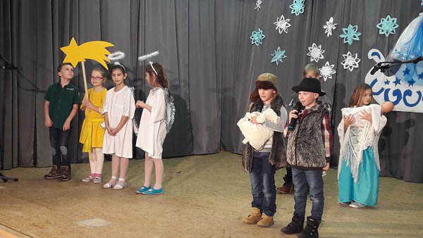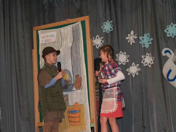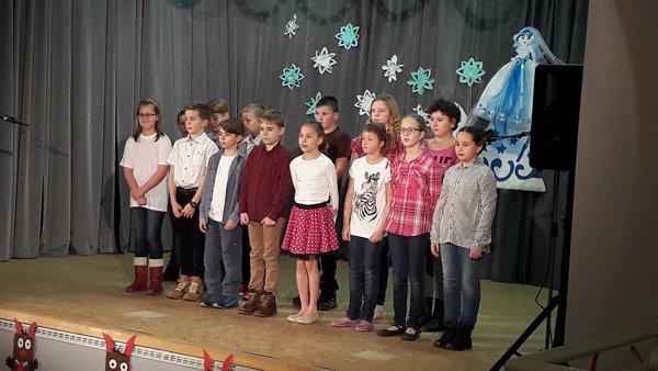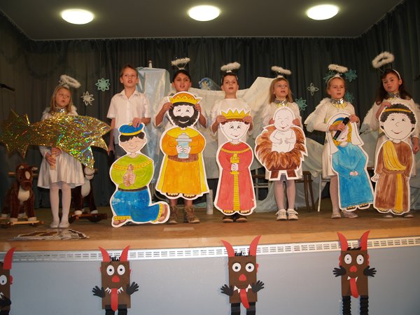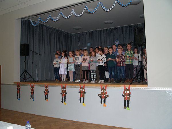 Slyšeli jsme písně Prosinec, Vánoce na míru, Tři oříšky, Ryba rybě, Kouzlo Vánoc a Čas vánoční. 1. a 2. ročník zahrál pohádku Betlém, 3. ročník Vánoční příběh, 4. ročník pohádku Čert a Káča a 5. ročník O čertech a chytrém ševci. Součástí besídky byla výstava vánočních výrobků a výstava perníčků. Velký dík patří všem účinkujícím, paní učitelkám a maminkám, které připravily občerstvení. Snad se nám podařilo navodit vánoční atmosféru a diváci odcházeli spokojení.