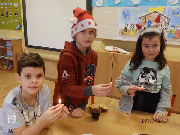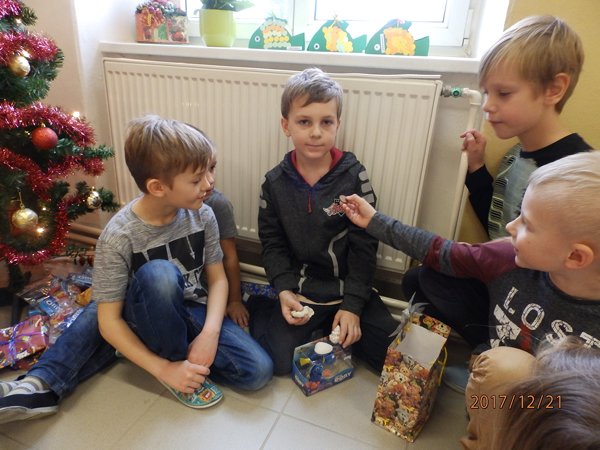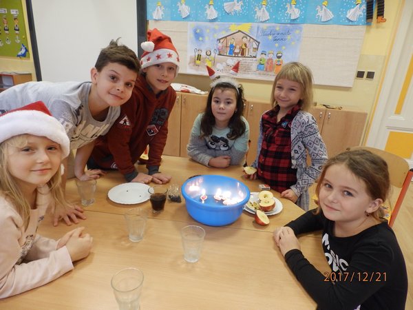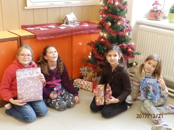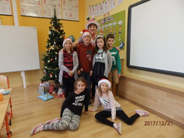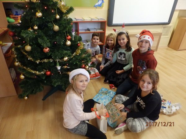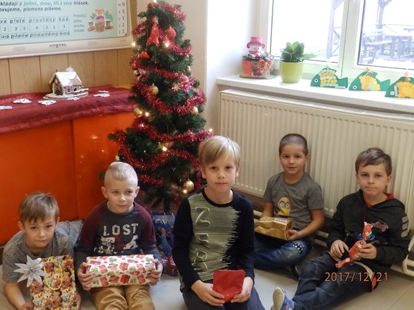 Ve čtvrtek 21. prosince 2017 jsme prožili poslední školní den v roce 2017. Každá třída si uspořádala svůj vánoční večírek. Přinesli jsme si občerstvení a dávali si navzájem dárečky. Pod stromečkem jsme měli i dárky společné – několik krabic stavebnice lego a skládací dřevěné domečky pro panenky Až se opět ve škole sejdeme, bude už rok 2018.