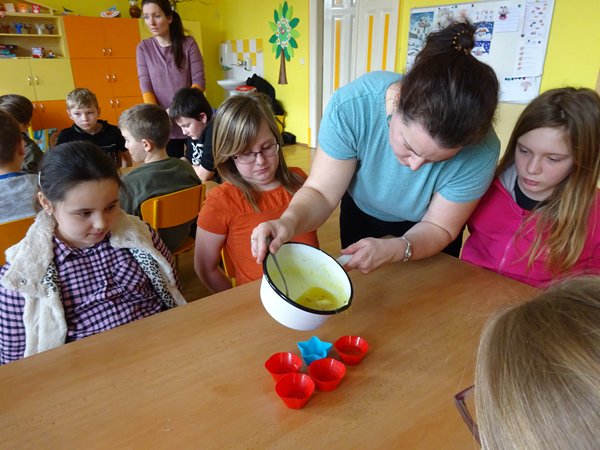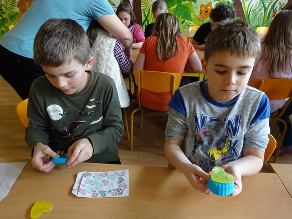 Ve čtvrtek 8. března 2018 nás potřetí navštívily ve školní družině pracovnice Ekocentra Iris Prostějov s přírodovědným programem Heřmánkové mýdlování. Děti se tentokrát dozvěděly informace o využití léčivého heřmánku a vyrobily si pro maminky mýdlo s heřmánkovou vůní. Program byl zajímavý, poučný a dětem se líbil.