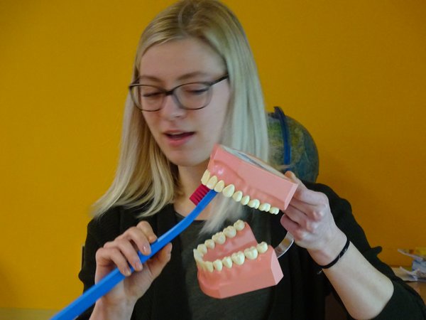 Prezentace byla pojata zábavnou a interaktivní formou, přizpůsobenou věku žáků. S sebou přivezly model chrupu a kartáčky v nadživotní velikosti, se kterými předvedly správný způsob čištění. Odvážným zájemcům pomocí indikátoru zubního plaku ukázaly, jestli jim při dosavadní běžné domácí péči zůstává na zubech více plaku, než by mělo. Následoval praktický nácvik, při kterém studentky ukázaly individuálně každému žákovi, jak správně čistit zuby a dásně, opravit případné špatné návyky. Zdravé zuby a krásný úsměv může mít každý, stačí vědět, jak na to.
