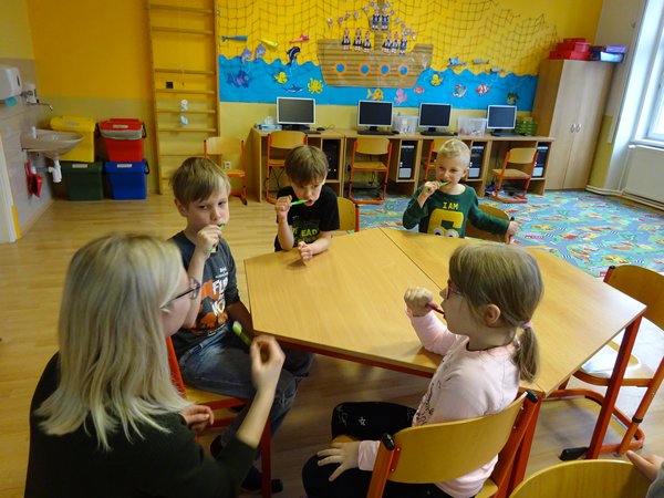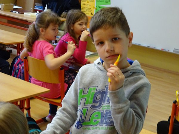V úterý 27. 3. 2018 se uskutečnil v naší škole program Dental Prevention, se kterým přijely studentky 4. ročníku zubního lékařství na lékařské fakultě UP v Olomouci. Cílem tohoto projektu je naučit děti, jak správně pečovat o své zuby.