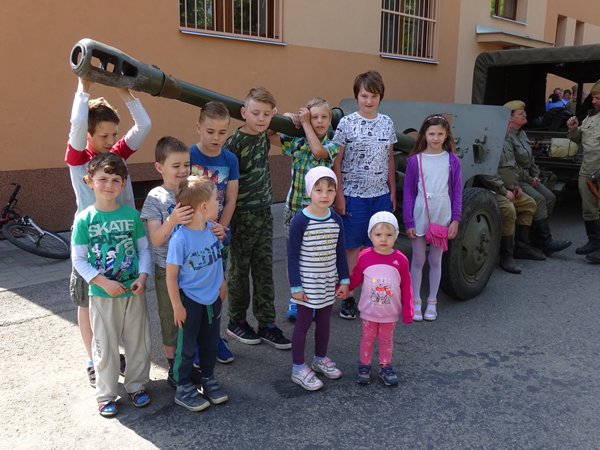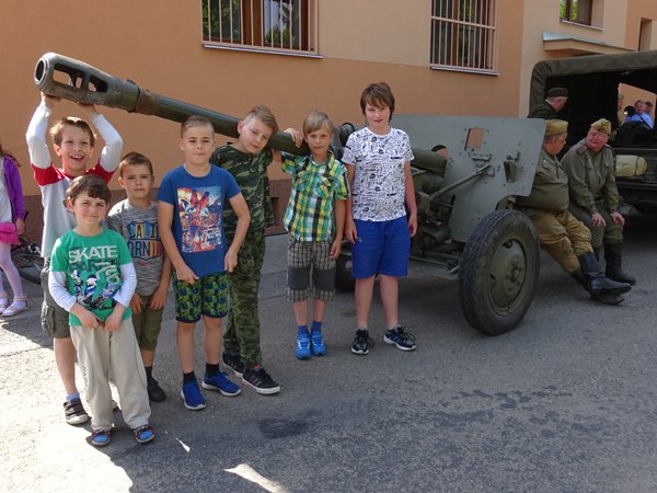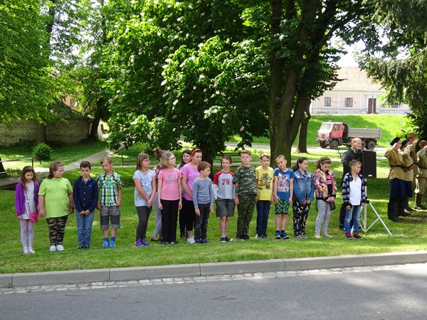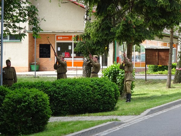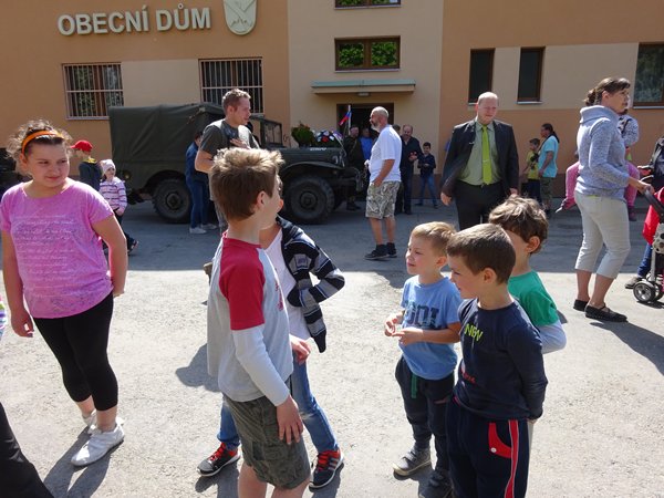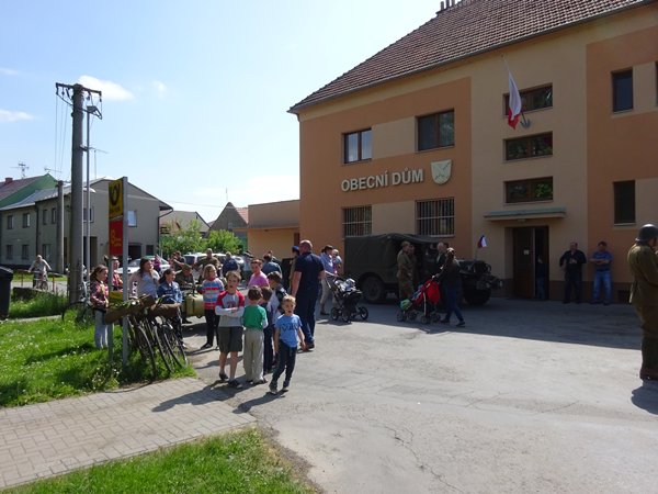 Začátek akce byl v 11 hodin u obecního úřadu, kde jsme si prohlédli ukázky vojenské techniky. Průvod vojáků, občanů a dětí potom přešel k pomníku 1. světové války u školy a dále k pomníku 2. sv. války v parku. Po krátkém projevu zazpívali naši žáci hymnu, poté následovalo kladení věnců k pomníku a slavnost ukončily výstřely z pušek.