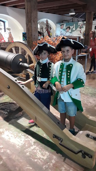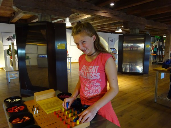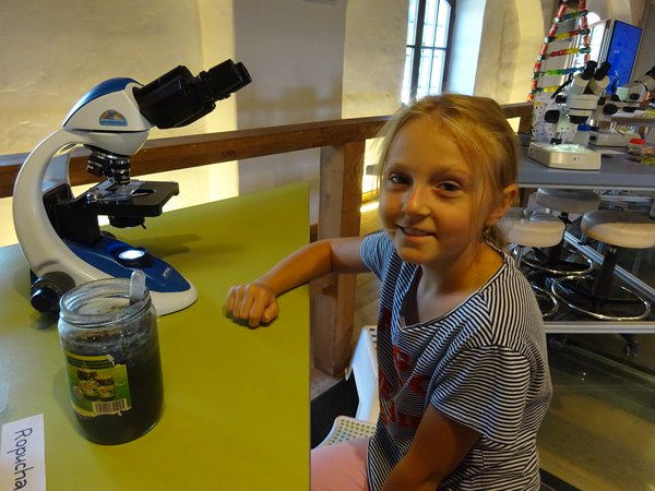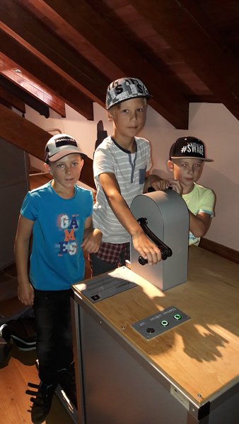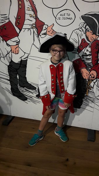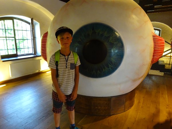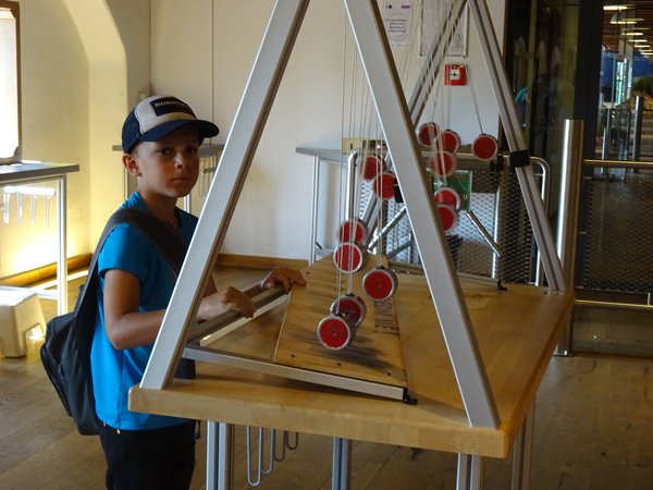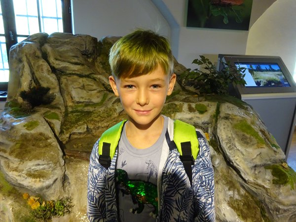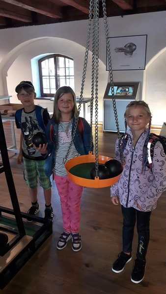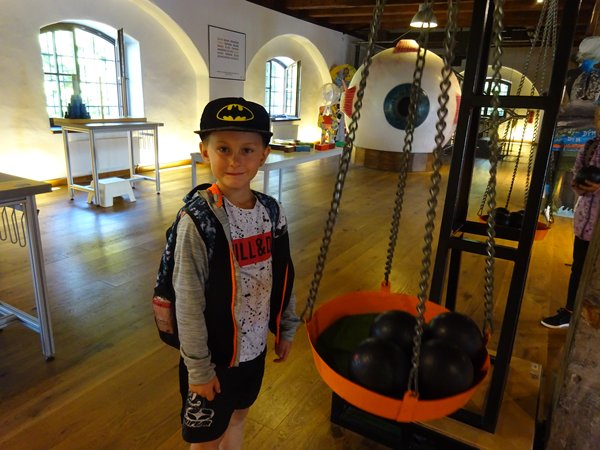 V přízemí je ukázka toho, jak se dříve válčilo, mohli jsme si tu vyzkoušet vojenské uniformy. Druhé patro je více interaktivní, nejvíce asi zaujme možnost projít se lidským mozkem, vyluštit různé hlavolamy, zahrát si 3d piškvorky, vytáhnout ježka z klece a nejvíc bylo plno u kuličkové dráhy, kterou děti mohou samy ovládat. Na druhé straně patra je expozice živá voda, zde můžete skládat mapy povodí v České republice, ale i moře v Evropě. Také zde uvidíte opravdu velké brouky a jednoho dokonce jak vyjíždí z tunelu. Ve 3. patře je planetárium, kde jsme se podívali na film o vesmíru. Vedle planetária je interaktivní expozice toho, jak funguje světlo. Výlet se nám moc líbil, byl zajímavý a poučný zároveň.