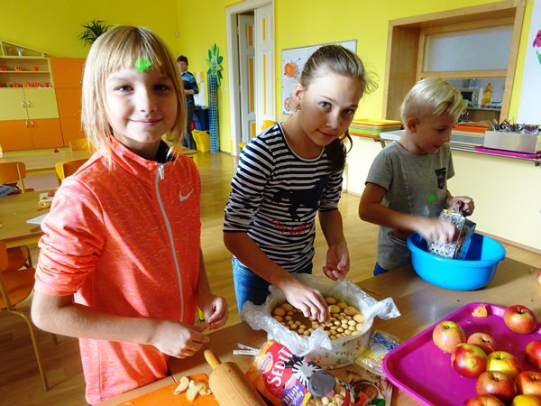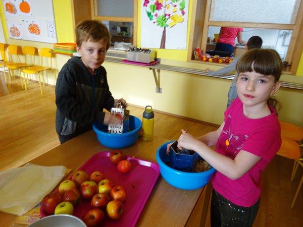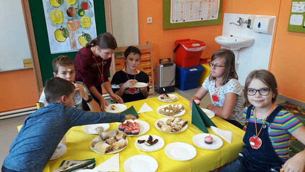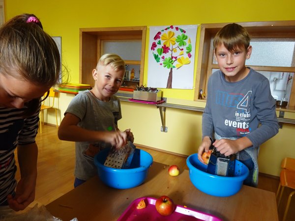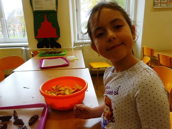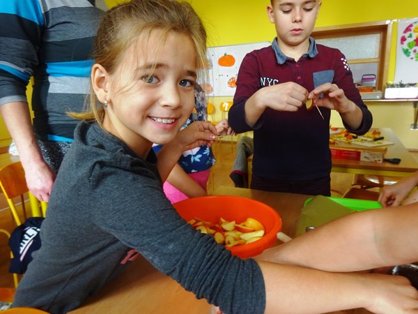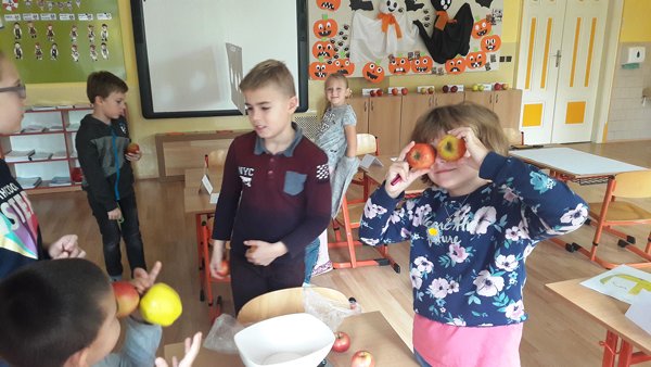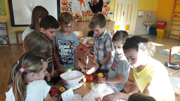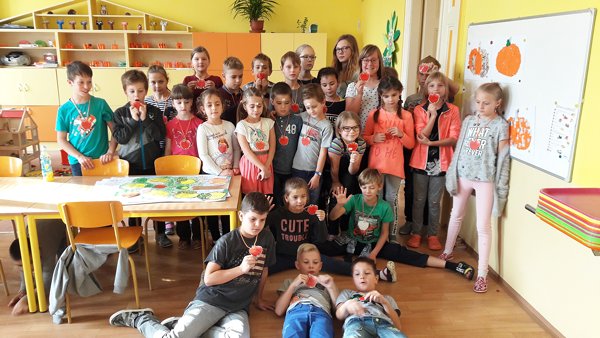 Na 1. stanovišti jsme si povídali zajímavosti o jablkách, vážili jsme nejmenší a největší jablko, měřili jejich obvod, skládali jsme puzzle, řešili hádanky a měřili jsme se na jablkometru. Na 2. stanovišti jsme vyráběli papírová jablíčka a na 3. stanovišti jsme vyráběli různé dobroty, jejichž základní surovinou byla právě jablíčka. Nejoblíbenější částí byla závěrečná ochutnávka vlastnoručně vyrobených dobrot. Den to byl vydařený a všichni jsme si ho náležitě „vychutnali“.