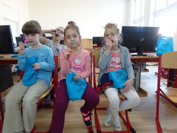 „Au, au, to to bolí,“ naříkal Hurvínek s ovázanou hlavou nad bolavým zoubkem z obrazovky, před zraky žáčků 1. a 3. třídy naší školy. Co se to dělo? 28. února 2019 u nás ve škole probíhal projekt „Veselé zoubky“, který již devátým rokem zprostředkovává Společnost dm drogerie markt, s.r.o.