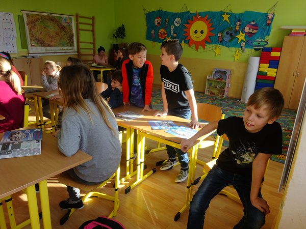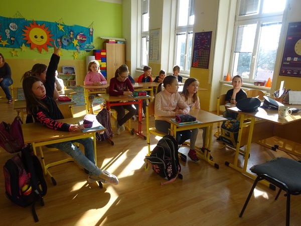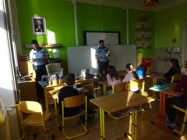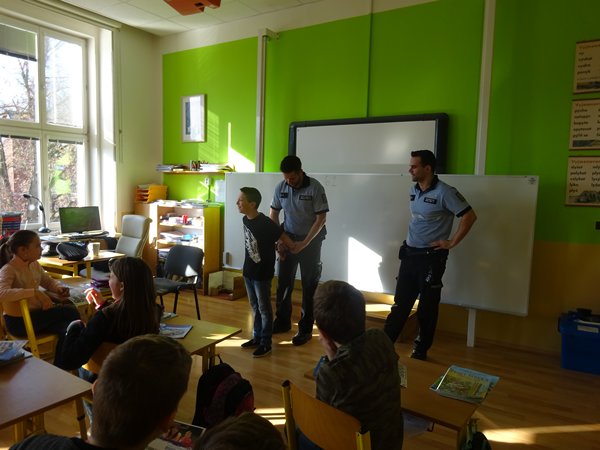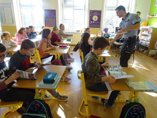 Ve středu 6. března 2019 navštívili naši školu příslušníci Policie ČR, kteří s žáky 4. a 5. ročníku uspořádali besedu nejen o bezpečnosti silničního provozu, ale také o bezpečnosti na sociálních sítích. Zpestřením programu bylo použití obušku a policejních pout.