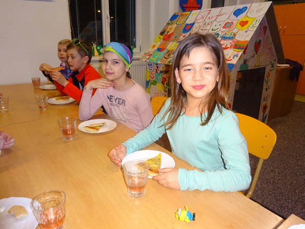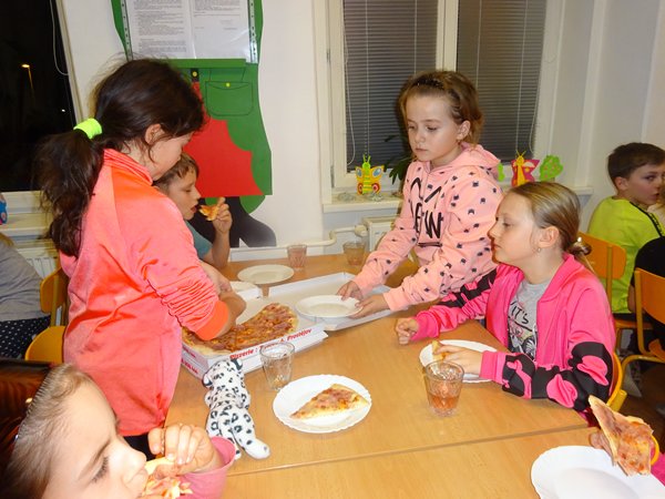 Děti si nejdříve za pomoci rodičů pečlivě nachystaly svá andersenovská doupata, poté se s rodiči rozloučily a akce mohla začít. V úvodním rozhovoru s duchem pana Andersena se děti dozvěděly řadu informací ze života známého pohádkáře, ty potom využily při plnění následujících úkolů. Při stezce noční školou se na jednotlivých stanovištích setkávaly s Malou mořskou vílou, Ošklivým káčátkem, Sněhovou královnou, Cínovým vojáčkem a dalšími hrdiny Andersenových pohádek. Cestou sbíraly úryvky básně, kterou na závěr správně poskládaly. Při noční stezce dětem vytrávilo a tak přišlo vhod občerstvení v podobě pizzy a čaje. A pak už následovalo čtení a promítání pohádek v jednotlivých třídách. Děti usínaly postupně, prvňáčci brzy, ale někteří starší vytrvalci až hluboko po půlnoci. Během pátečního dopoledne pokračoval program s panem Andersenem další četbou a promítáním. Doplnili jsme zbývající pracovní listy a nakreslili spoustu obrázků. Po obědě si začali rodiče postupně svá anderseňata vyzvedávat, některá však musela vydržet až na konec družiny. Na dětech i paní učitelkách bylo vidět, že uplynulá noc byla náročná, ale podle ohlasů si děti Noc s Andersenem náležitě užily a nocování ve škole se jim líbilo.