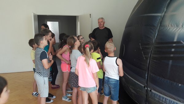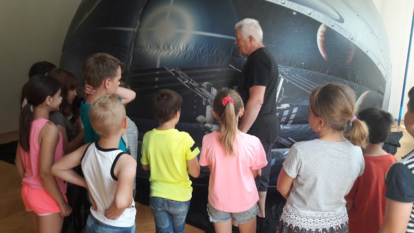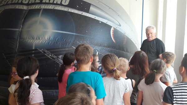 V pátek 14. června 2019 navštívilo naši školu po několika letech sférické kino, které promítalo dětem populárně – naučné a vzdělávací filmy. Toto kino není klasické, ale jedná se o nafouknutou kopuli, která byla umístěná v naší tělocvičně. Žáci si do ní vlezli, a uvnitř na stěnách kopule sledovali promítané výukové video. Program byl zajímavý a dětem se velmi líbil.