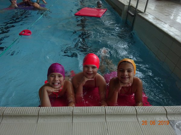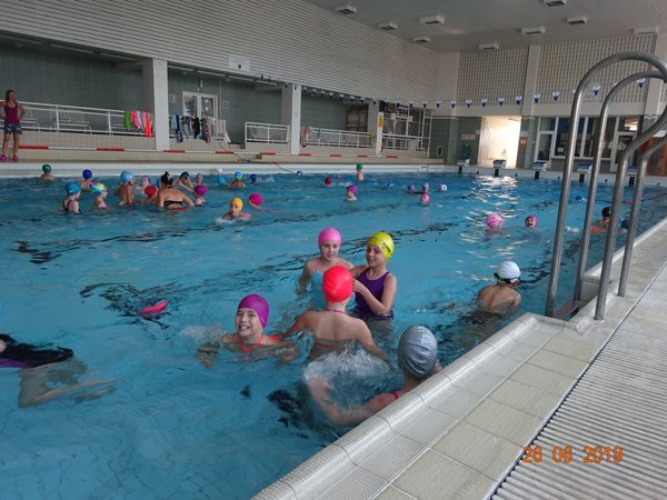 Ve 4. čtvrtletí absolvovali naši prvňáci a třeťáci plavecký výcvik. Mokré vysvědčení dostali téměř všichni. V příštím školním roce se budou zdokonalovat.