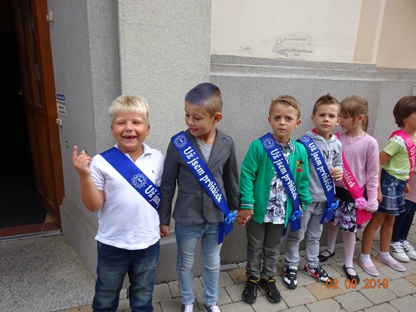V pondělí 2. září 2019 jsme se po prázdninách opět sešli v naší škole. Přivítali jsme deset nových žáků 1. ročníku, kteří se v doprovodu své rodiny zúčastnili zahájení nového školního roku 2019/2020.
