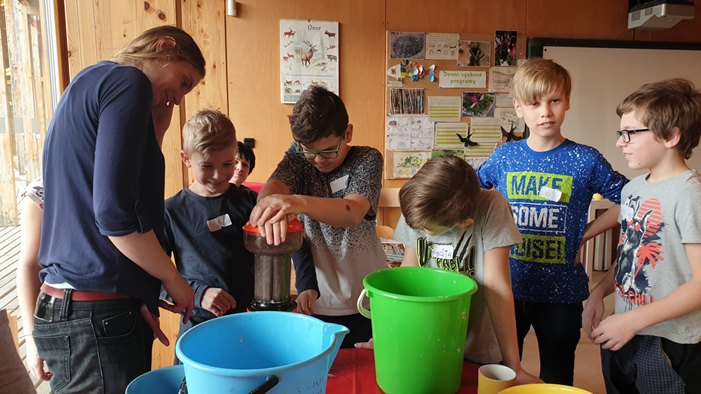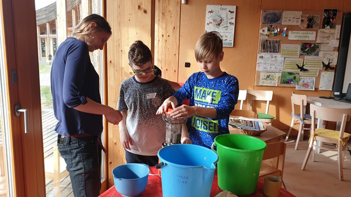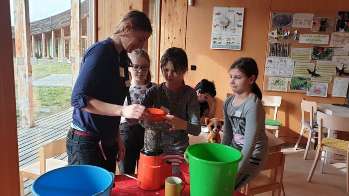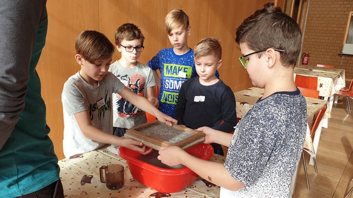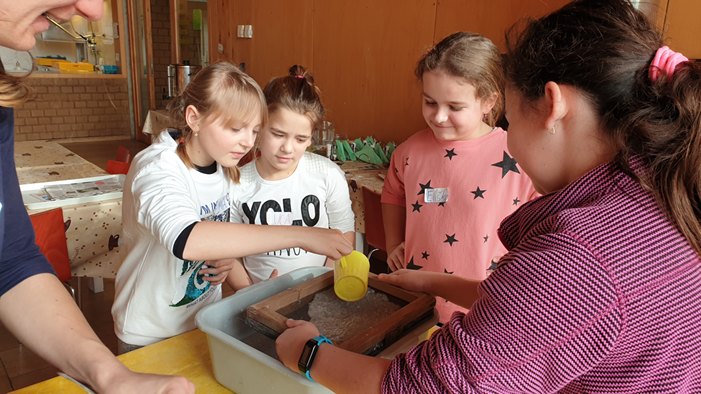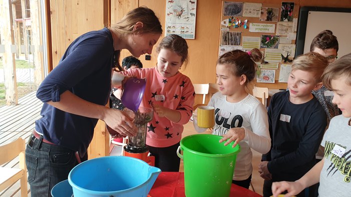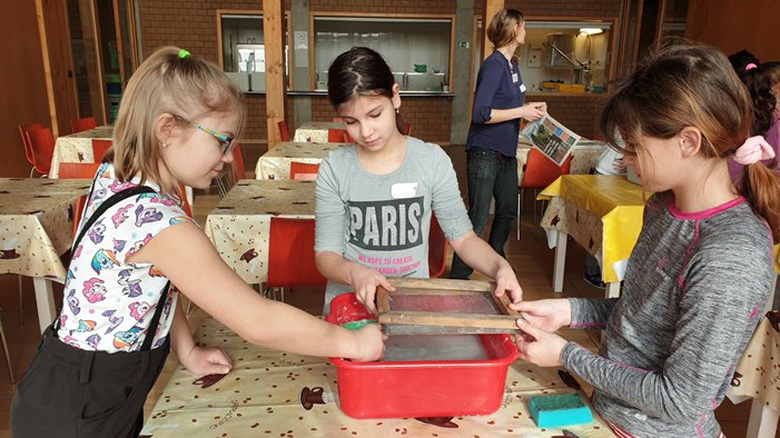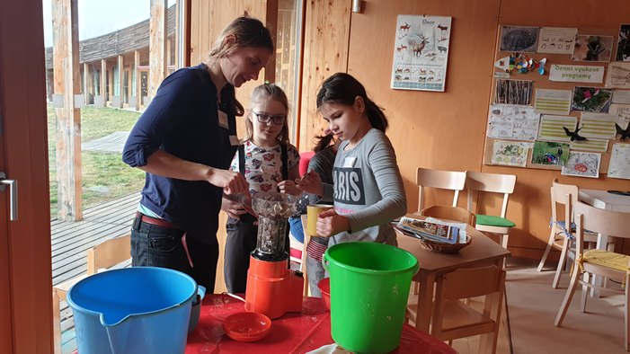 Starší žáci se zase v programu „Jak vzniká papír“ dozvěděli, jak si vyrobit ruční papír. Oba programy byly zajímavé a dětem se pobyt na Sluňákově moc líbil.