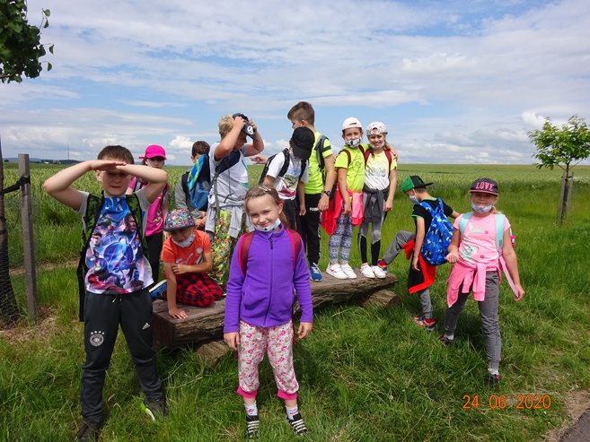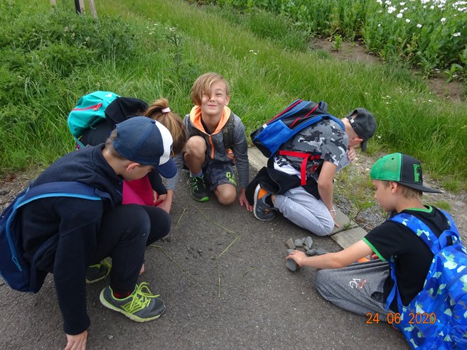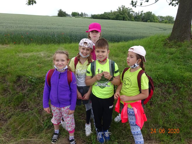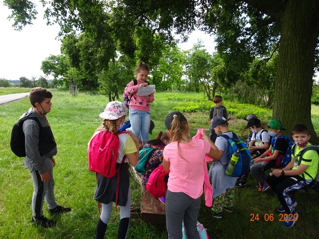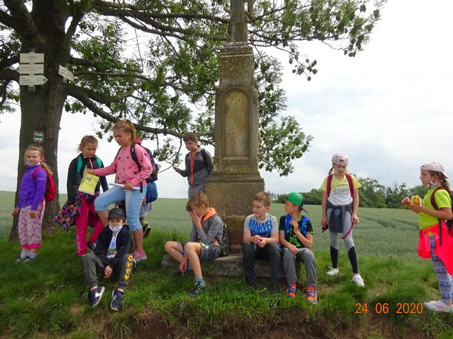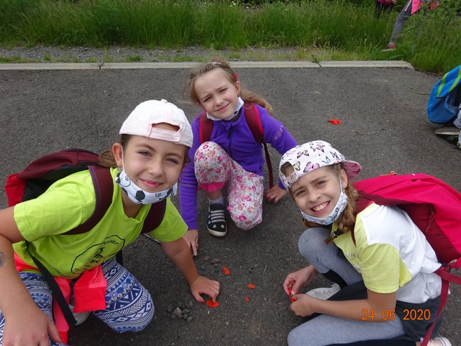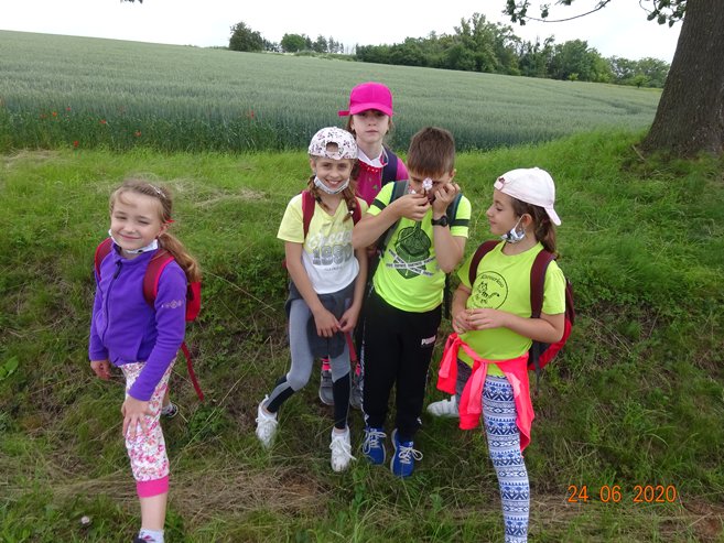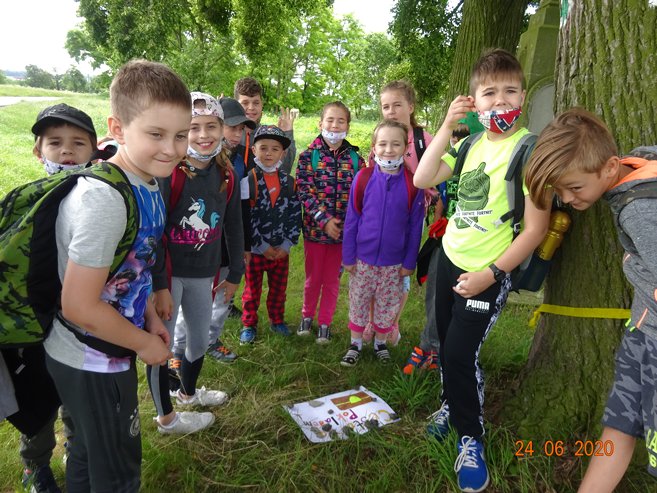 Ve středu 24. června 2020 jsme se vydali na pěší Cestu za pokladem do Skalky a okolí. Páťáci Vítek, Kája, Eliška, Ema a Míša připravili pro své mladší spolužáky řadu úkolů, které děti plnily během cesty do Skalky. V cíli je čekalo překvapení v podobě sladké odměny. Zpočátku nás počasí trochu strašilo, ale nakonec to byl krásný den. Děkujeme páťákům za pěkně připravenou akci.