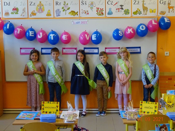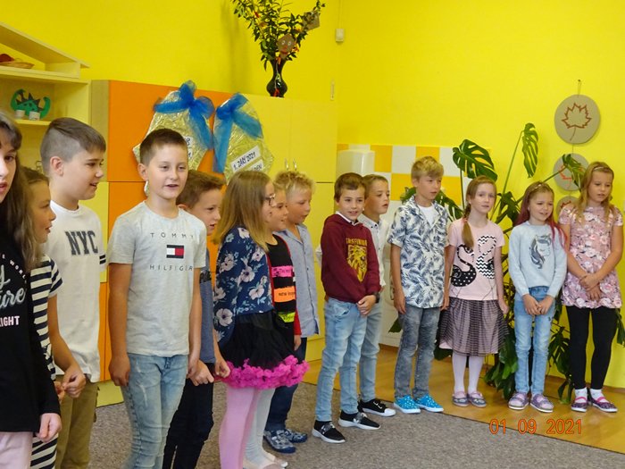 Ve středu 1. září 2021 jsme se po prázdninách opět sešli v naší škole a přivítali jsme šest nových žáků 1. ročníku, kteří se v doprovodu svých rodičů zúčastnili zahájení nového školního roku 2021/2022. Nejdříve všechny žáky přivítala paní ředitelka a poté pan starosta. Své mladší kamarády přivítali i žáci a žákyně starších ročníků.