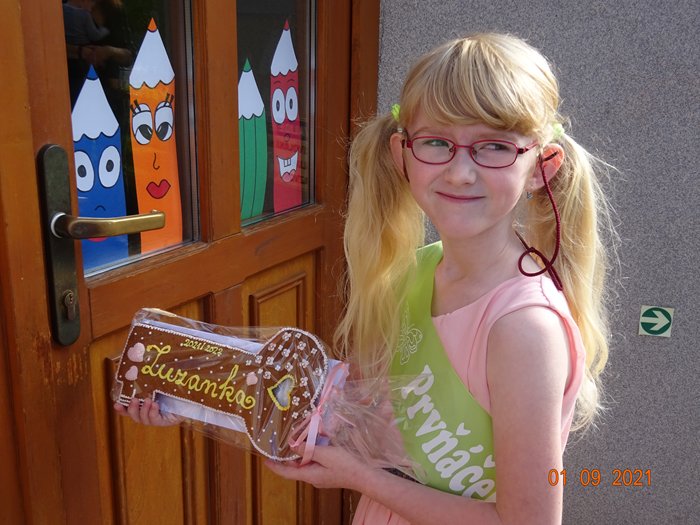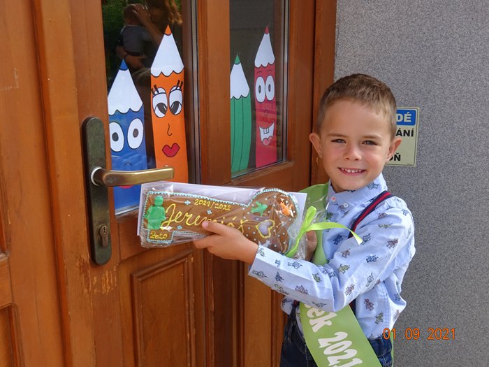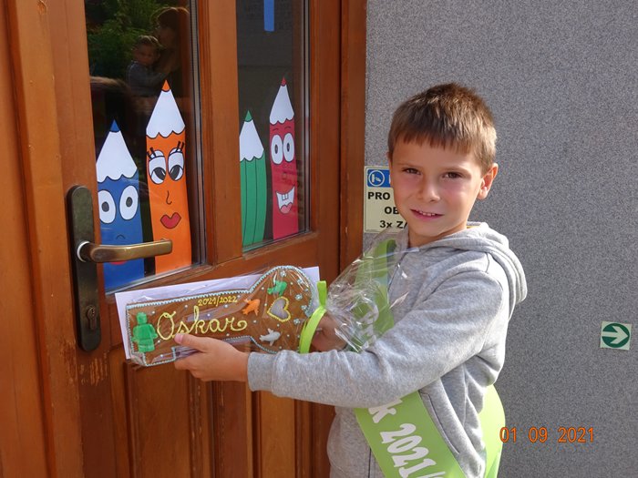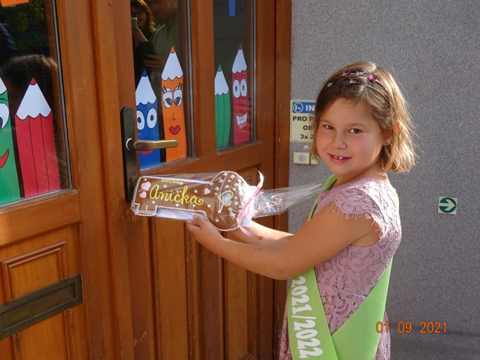 Po slavnostním šerpováním Anička, Vítek, Madlenka, Oskar, Zuzanka a Jeremiáš odemkli perníkovým klíčem svoji školu. Prvňáčci, přejeme vám, ať se vám ve škole líbí a zažijete v ní mnoho úspěchů. Úspěšný školní rok 2021/2022 přejeme také všem žákům, jejich rodičům i paní učitelkám.