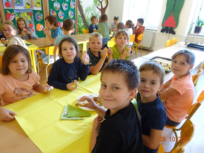 V pátek 8. října 2021 se celou naší školou linula nádherná vůně. Konal se totiž tradiční Jablíčkový den. Děti se hned ráno rozdělily do tří skupin, které se během dopoledne vystřídaly na třech stanovištích.
