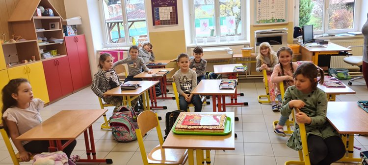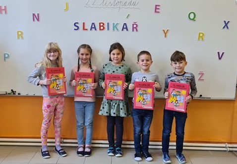 Konečně se naši prvňáčci dočkali tolik očekávaného dne, kdy dostanou nový Slabikář. Do školy chodí teprve tři měsíce, ale za tu krátkou dobu se toho hodně naučili. Počítají do 6, znají 9 písmenek, čtou slabiky, slova i první věty, učí se psát psacím písmem. V pondělí 22. listopadu 2021 na ně čekalo ve škole překvapení. Uspořádali jsme pro ně Slavnost slabikáře.