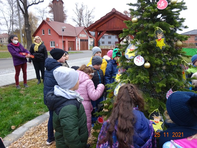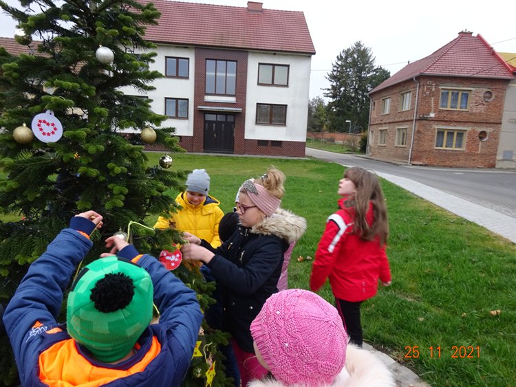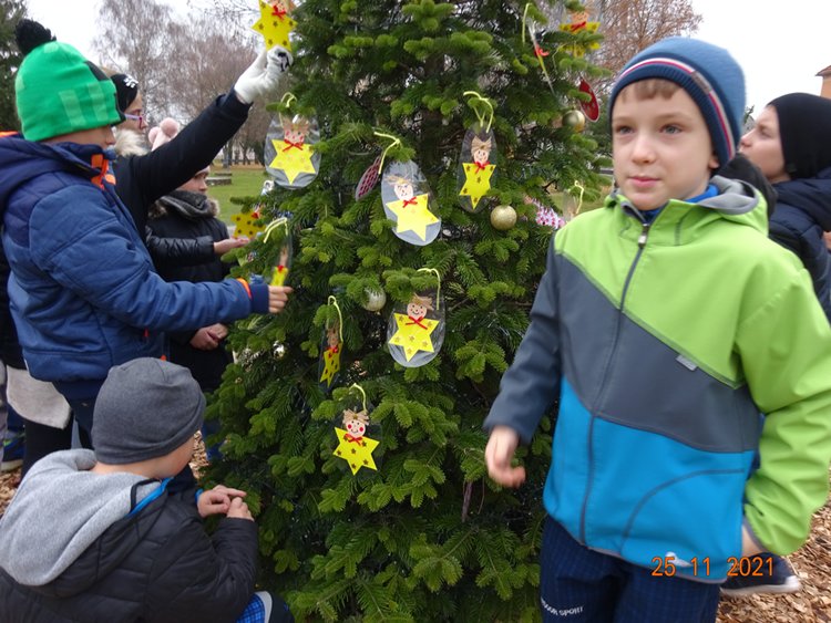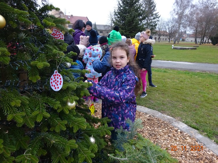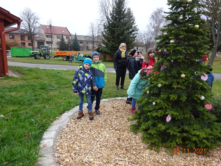 Ve čtvrtek 25. listopadu 2021 jsme se sešli u nového vánočního stromku „Pivíňáčku“, který jsme si společně s dětmi z mateřské školy vánočně vyzdobili. Bylo to stejně netradiční jako v loňském roce, protože covidová doba opět nepřeje setkávání více lidí na jednom místě. Vánoční stromy - velký i ten malý, se rozzáří večer až se setmí a zahájí nám tak adventní čas.