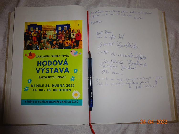 V neděli 24. dubna 2022 jsme v naší škole přivítali hodové návštěvníky, kteří se přišli podívat na výrobky našich žáků. Účast byla veliká a dětské práce se všem líbily.