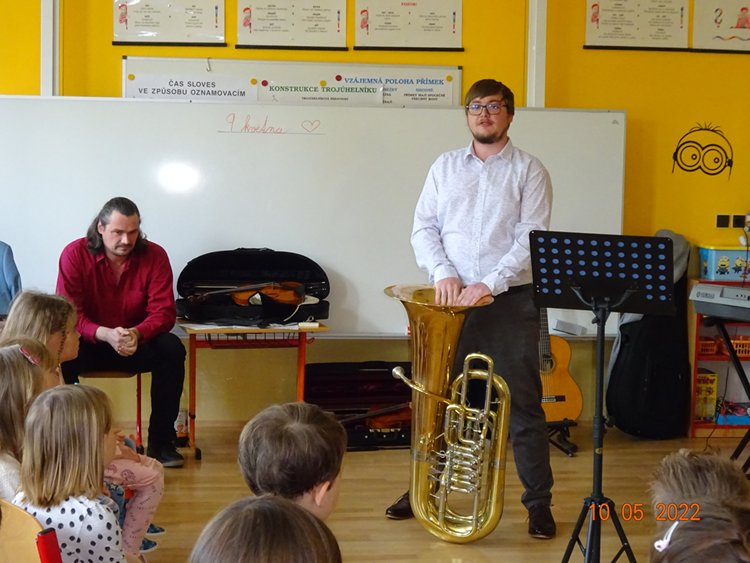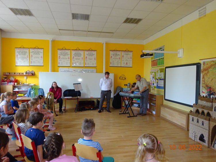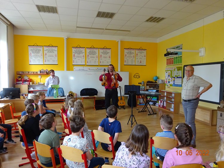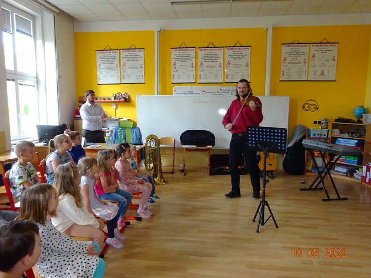 V úterý 10. května 2022 přijeli do naší školy zástupci ZUŠ v Němčicích nad Hanou, aby předvedli našim žákům nástroje, které se budou vyučovat v příštím školním roce a naši žáci budou mít možnost se k výuce přihlásit. Koncert byl zajímavý, zábavný a v mnoha dětech probudil touhu po hudebním vzdělávání.