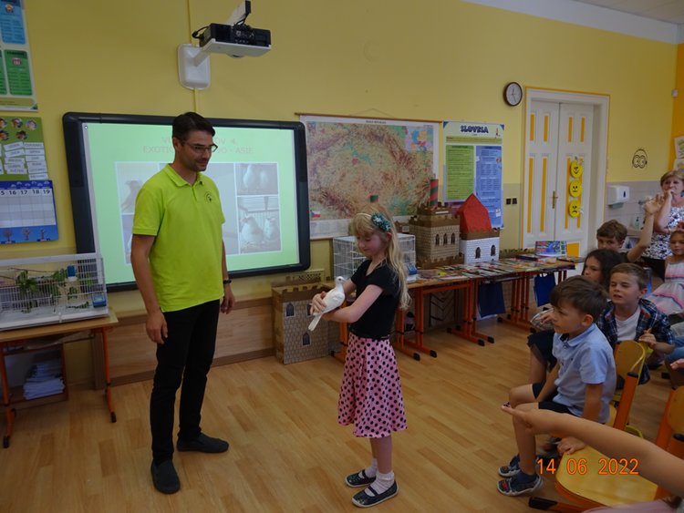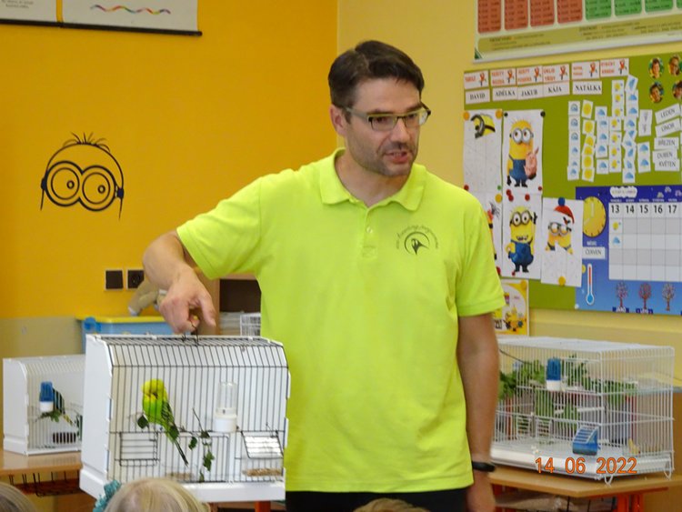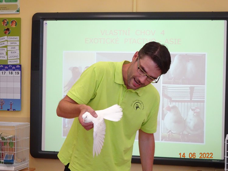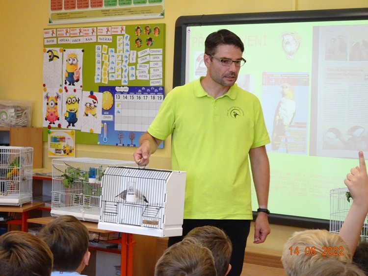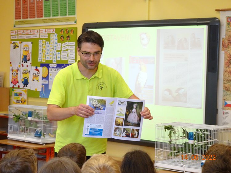 V úterý 14. června 2022 se uskutečnila pro žáky naší školy zajímavá beseda „Od záchranných programů k chovatelství“, se kterým přišel do naší školy RNDr. Bc. Jaromír Vachutka, učitel, dlouholetý chovatel a držitel titulu Mistr Evropy a bronzové medaile z Mistrovství světa se svými opeřenci.