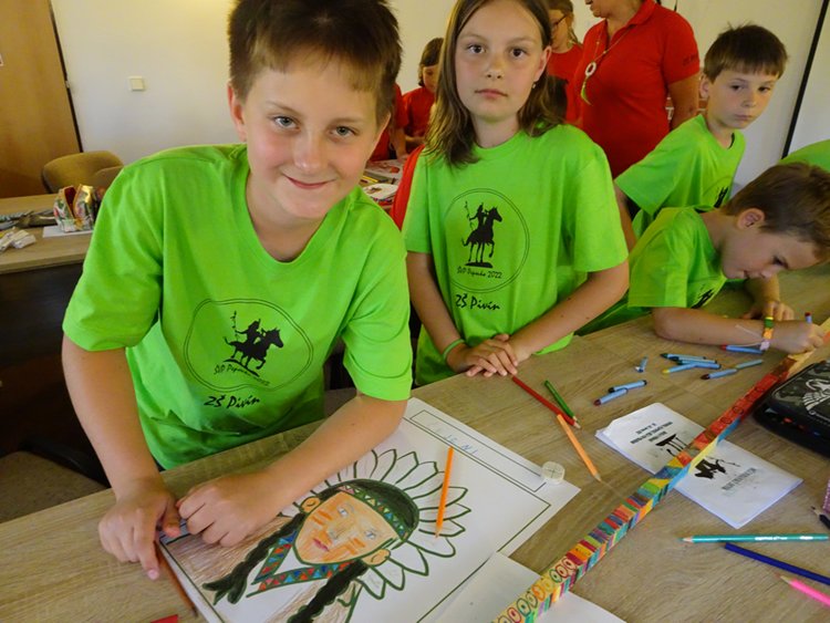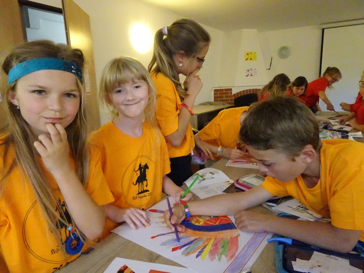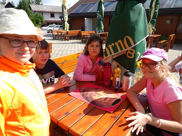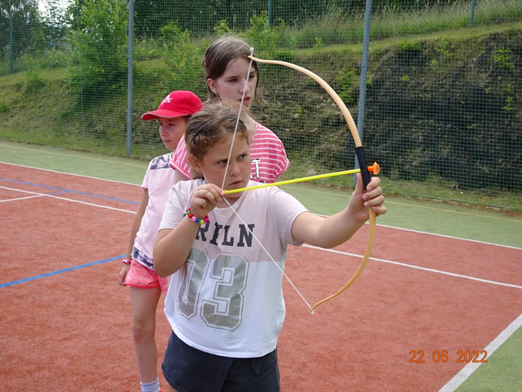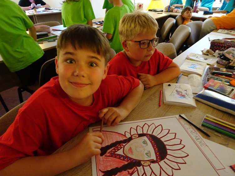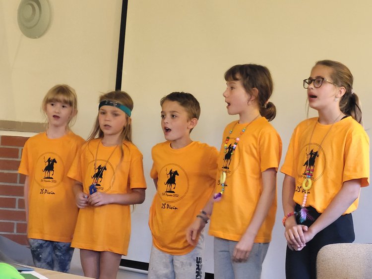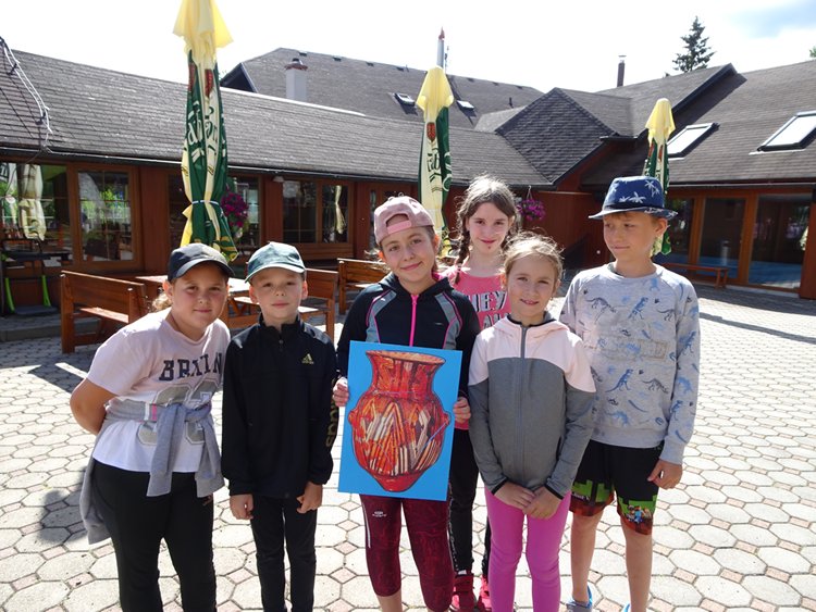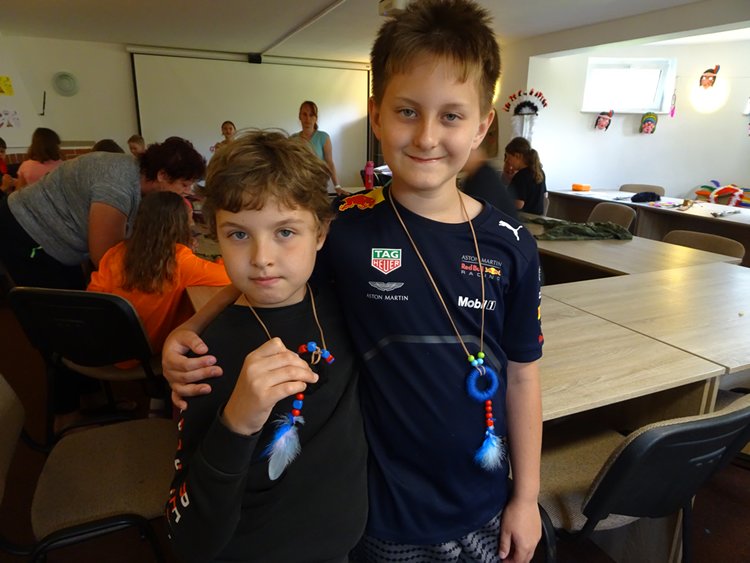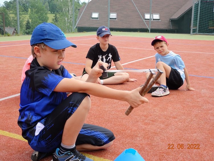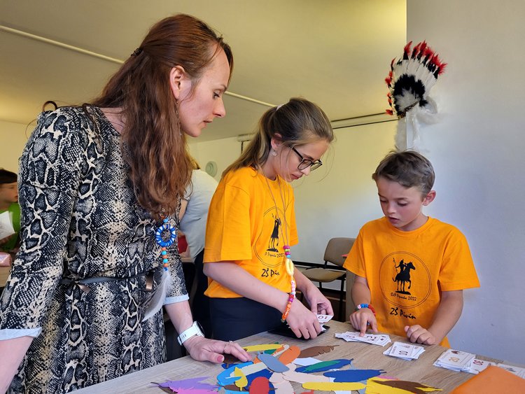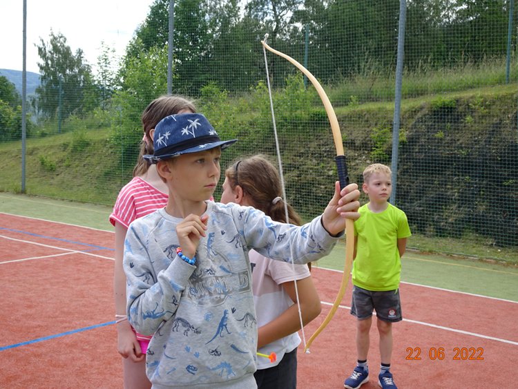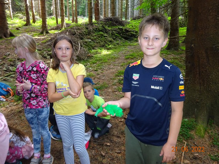 Úterý 21. června 2022 jsme na naší indiánské výpravě hledali vzácné dílky keramiky, ve zlatonosném potoce lovili zlaté valouny, skládali indiánské osmero, vyráběli si náhrdelník a náramek, v lese hledali peříčka vzácného ptáka a luštili indiánské hádanky. V bazénu jsme ukazovali plavecké umění indiána.