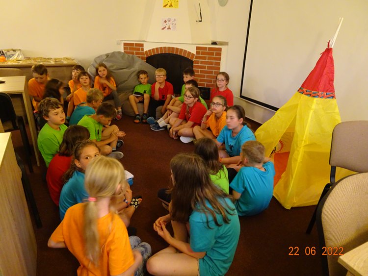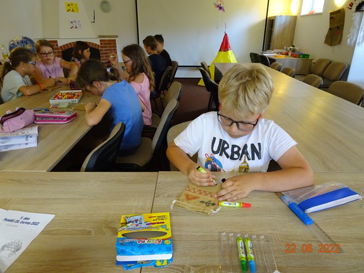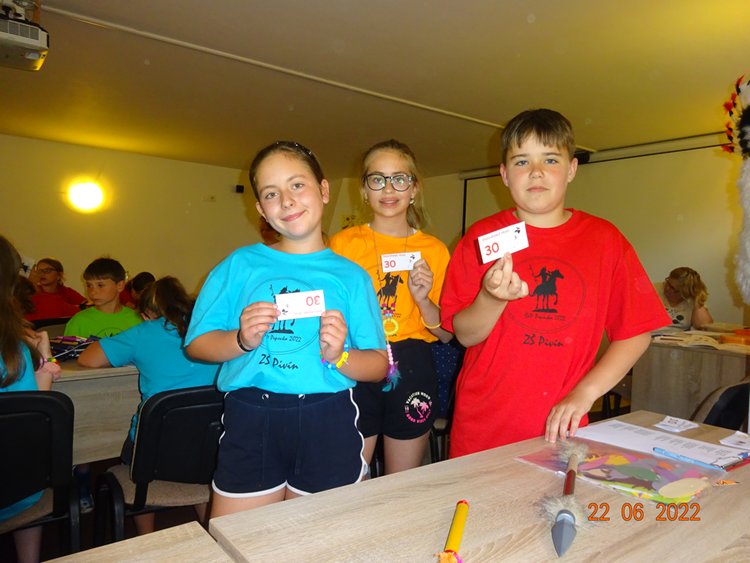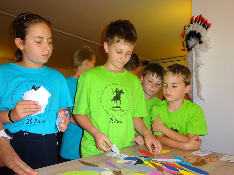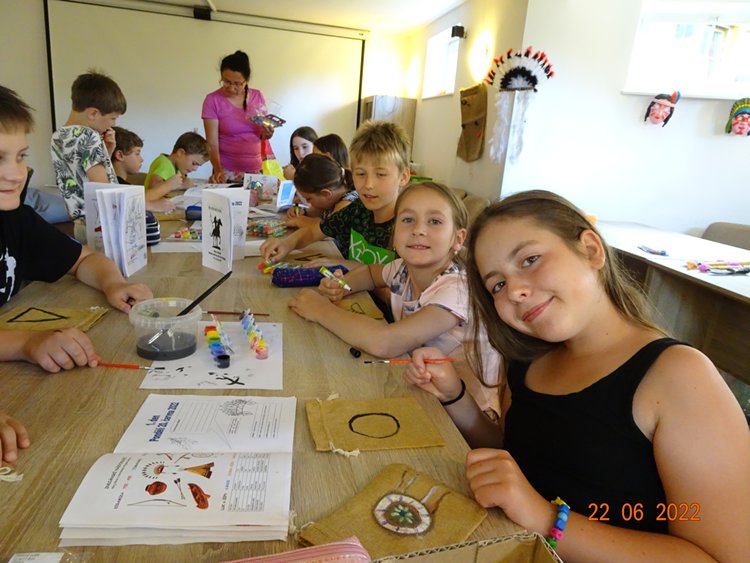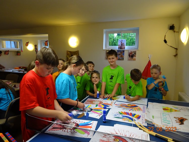 Středa 22. června 2022 byla v naší indiánské vesnici ve znamení olympiády – v 10.00 hodin proběhl celorepublikový Olympijský běh, ke kterému jsme přidali střelbu z luku, lov bizona, plavání, orientaci v lese se zavázanýma očima. Vyzdobili jsme si indiánský váček a v lese postavili teepee. Za soutěže jsme získávali indiánské peso, které jsme měnili za peříčka na čelenku našeho indiána.