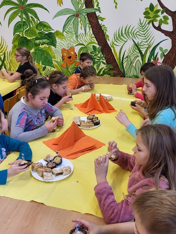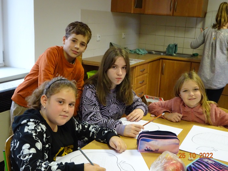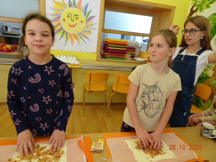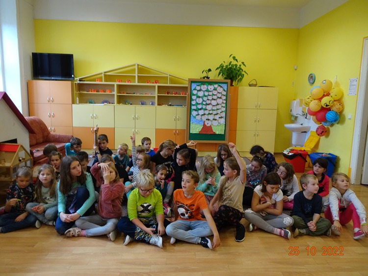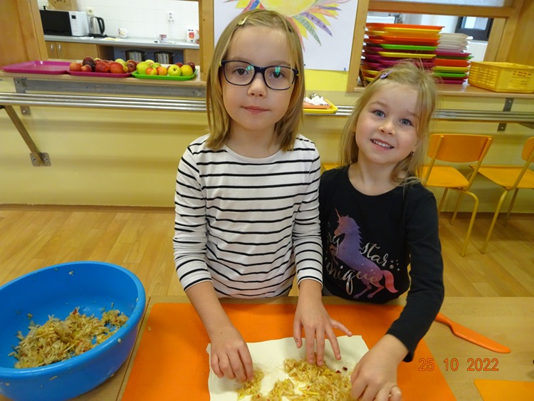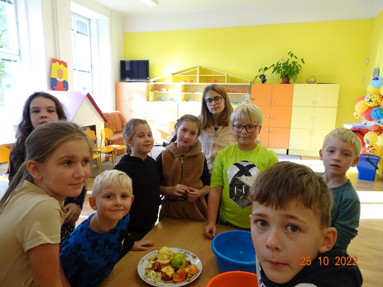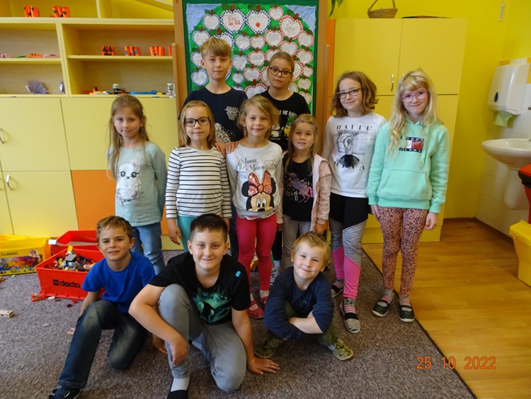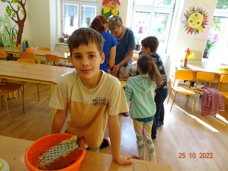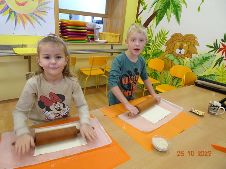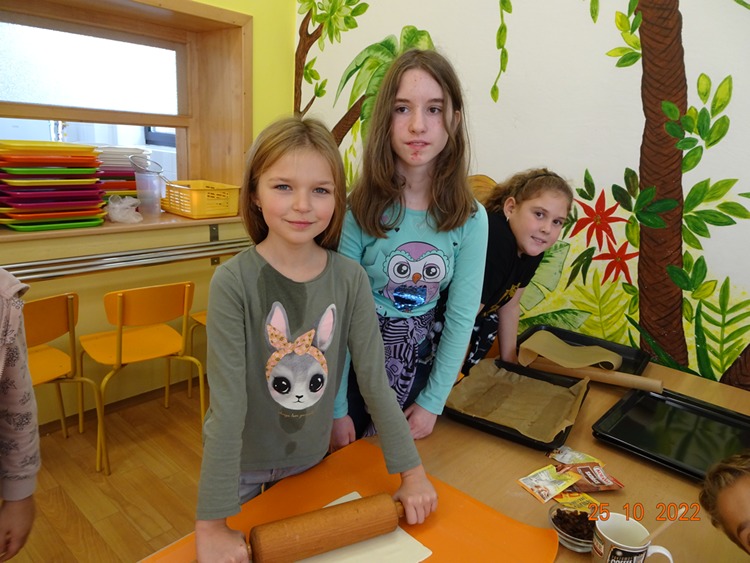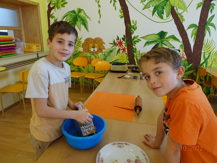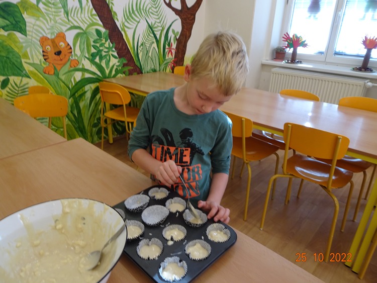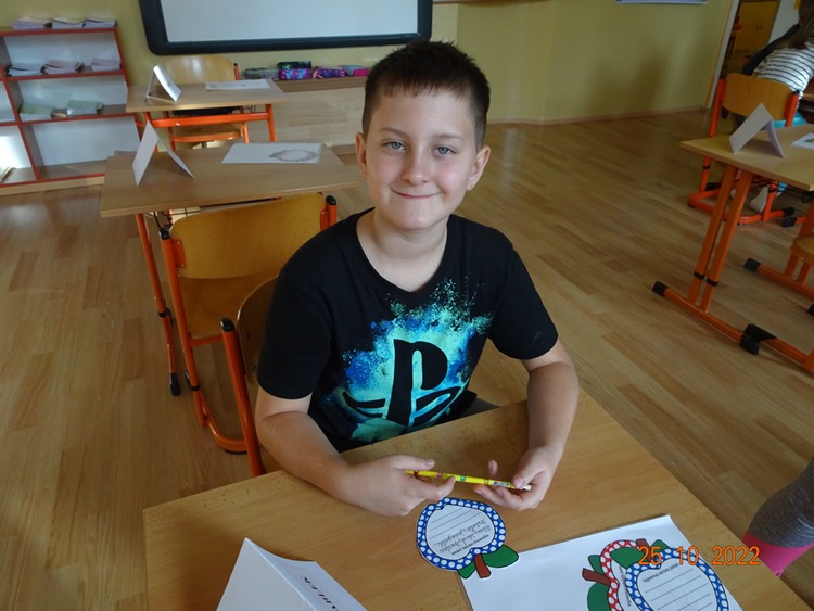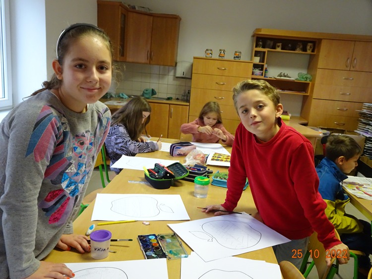 Na 1. stanovišti jsme měřili a vážili největší a nejmenší jablko, seznámili jsme se s různými odrůdami jabloní, s jejich pěstováním a využitím. Skládali jsme puzzle, vyhledávali informace a hádali hádanky. Na 2. stanovišti jsme výtvarně zpracovávali téma jablíček – malovali a lepili jsme jablíčka a na 3. stanovišti jsme pekli z jablíček různé dobroty – štrúdl, muffiny a hraběnčiny řezy. Na závěr jsme si prostřeli stůl a všechny dobroty jsme snědli. Jablíčkový den se nám vydařil.
