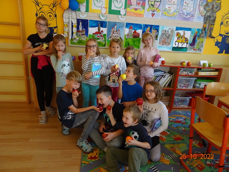 V úterý 25. října 2022 se celou naší školou linula jablíčková vůně. Konal se totiž tradiční Jablíčkový den. Děti se hned ráno rozdělily do tří skupin – červené, modré a žluté, které se během dopoledne vystřídaly na třech stanovištích.
