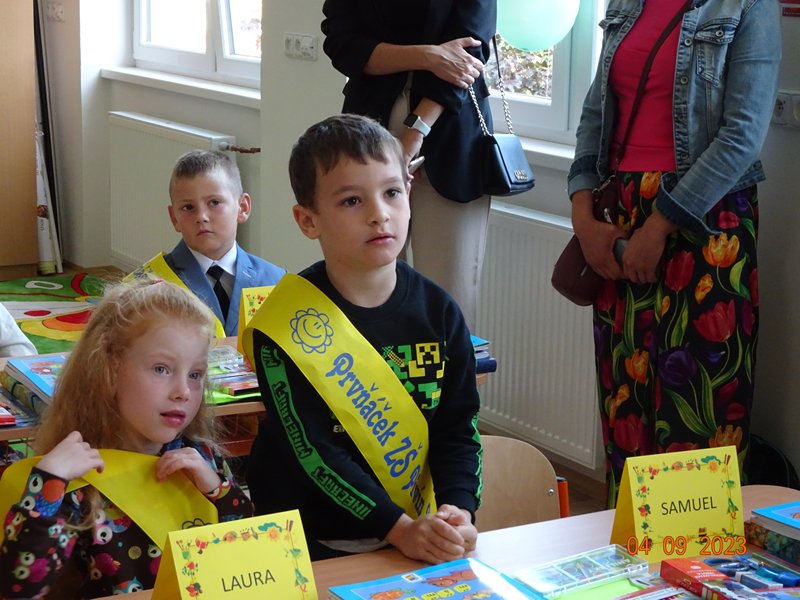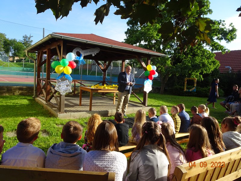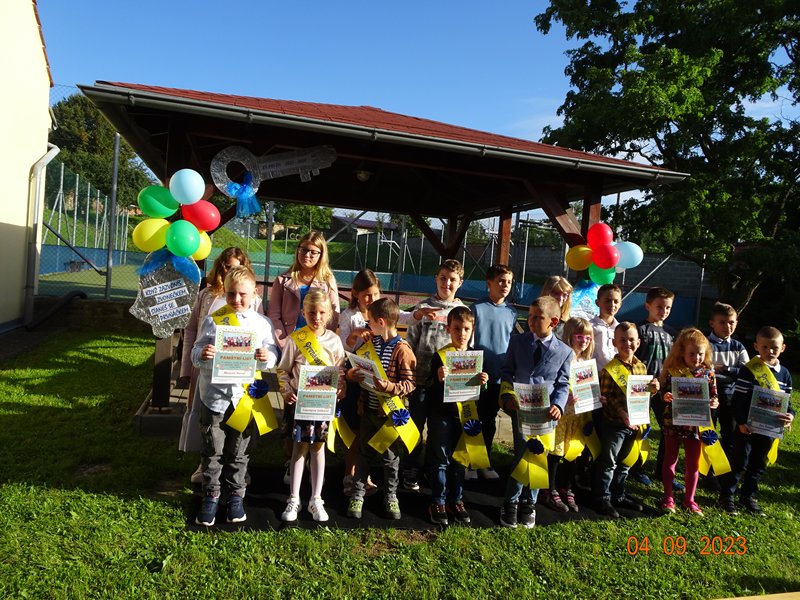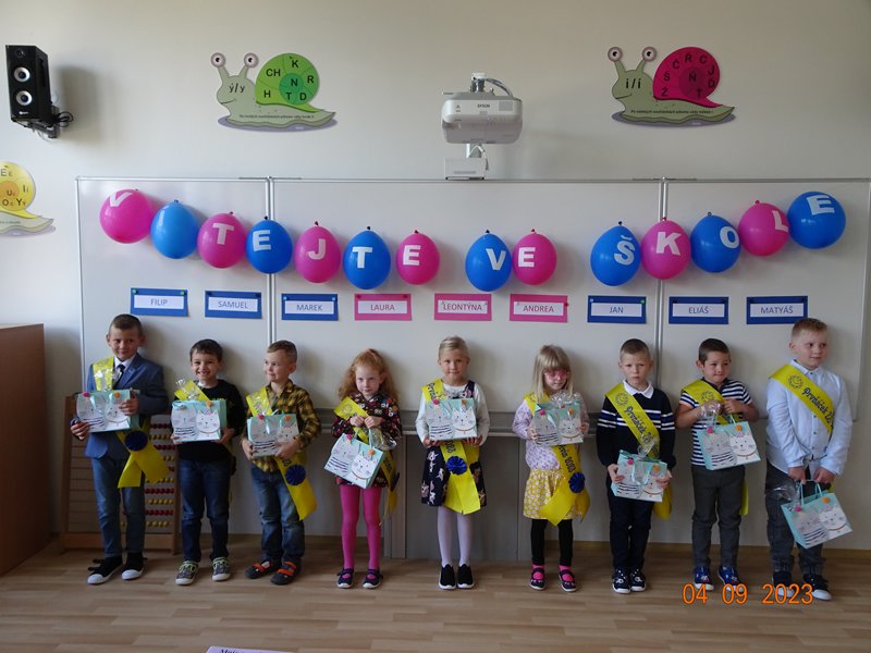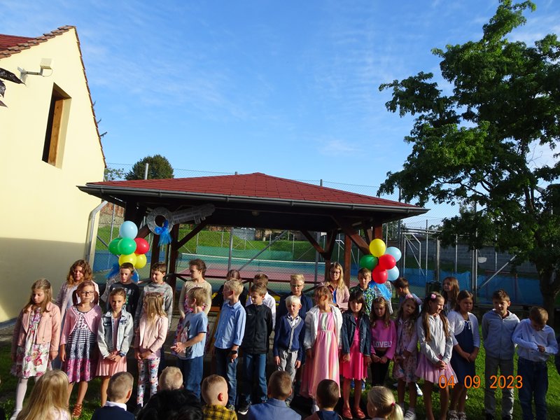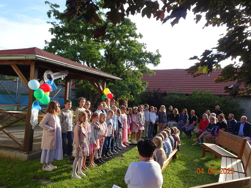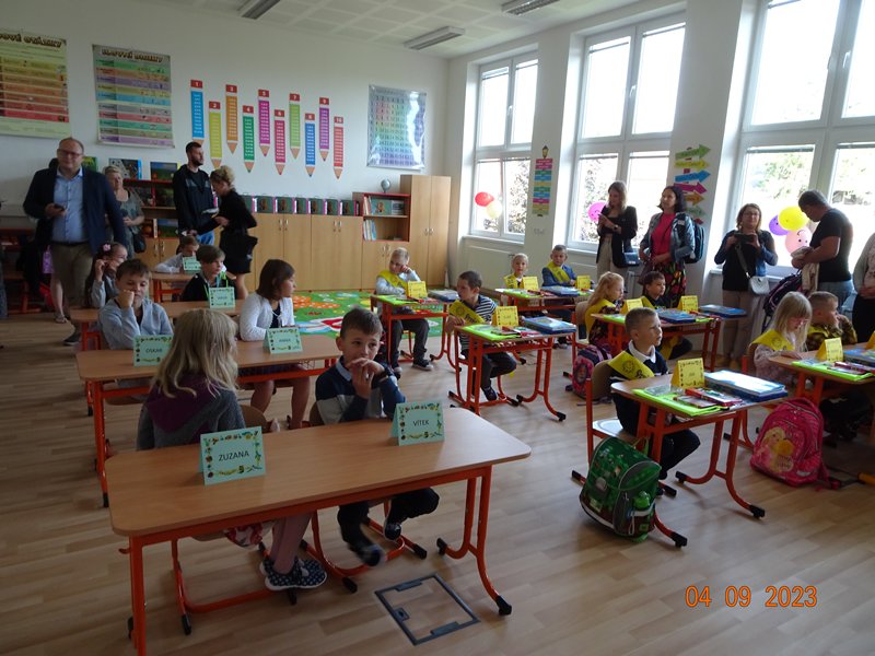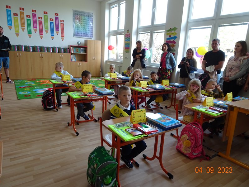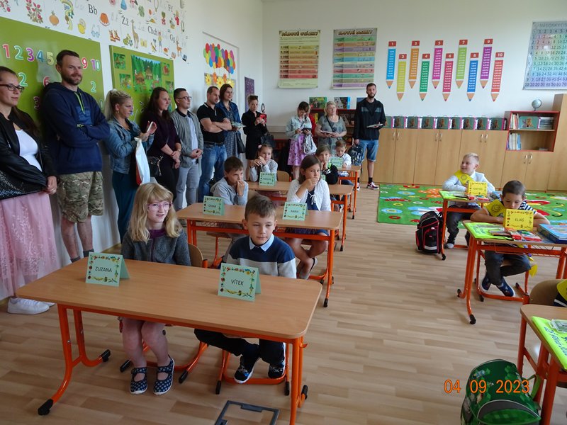 V pondělí 4. září 2023 jsme se po prázdninách opět sešli v naší škole a přivítali jsme devět nových žáků 1. ročníku, kteří se v doprovodu svých rodičů zúčastnili zahájení nového školního roku 2023/2024.