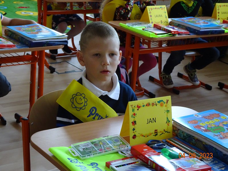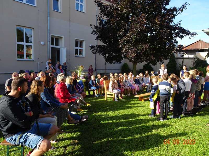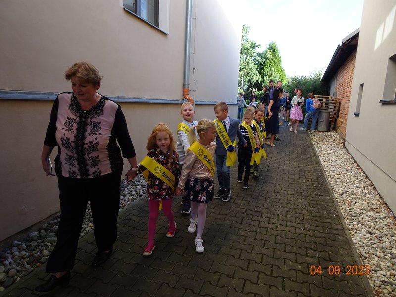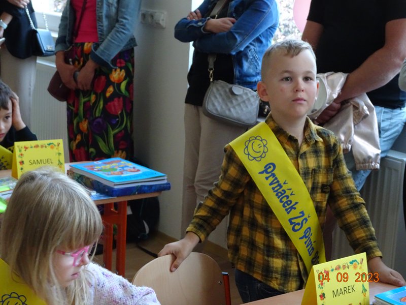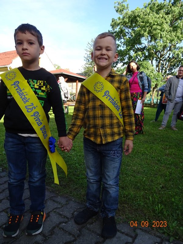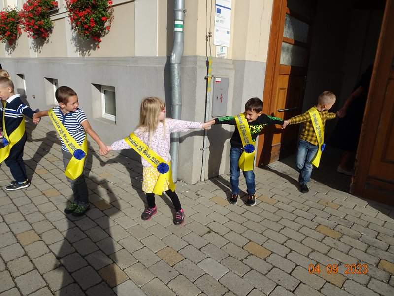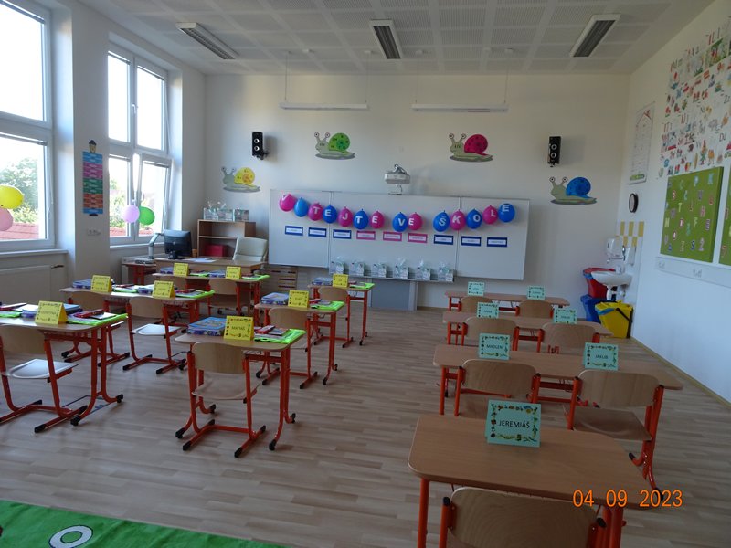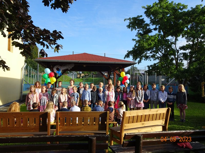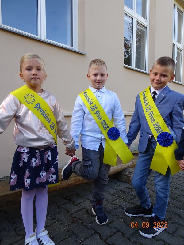 V pondělí 4. září 2023 jsme se po prázdninách opět sešli v naší škole a přivítali jsme devět nových žáků 1. ročníku, kteří se v doprovodu svých rodičů zúčastnili zahájení nového školního roku 2023/2024.